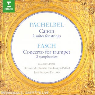 Liste des pistes 1.1 . canon in d major (pachebel johann) - Fasch, Johann Friedrich,Pachelbel, Johann 1.2 . suite (partita) n 6 in b flat major : sonate (pachebel johann) - Fasch, Johann Friedrich,Pachelbel, Johann 1.3 . suite (partita) n 6 in b flat major : courante (pachebel johann) - Fasch, Johann Friedrich,Pachelbel, Johann 1.4 . suite (partita) n 6 in b flat major : gavotte (pachebel johann) - Fasch, Johann Friedrich,Pachelbel, Johann 1.5 . suite (partita) n 6 in b flat major : sarabande (pachebel johann) - Fasch, Johann Friedrich,Pachelbel, Johann 1.6 . suite (partita) n 6 in b flat major : gigue (pachebel johann) - Fasch, Johann Friedrich,Pachelbel, Johann 1.7 . suite in g major : sonatine (pachebel johann) - Fasch, Johann Friedrich,Pachelbel, Johann 1.8 . suite in g major : ballet (pachebel johann) - Fasch, Johann Friedrich,Pachelbel, Johann 1.9 . suite in g major : sarabande (pachebel johann) - Fasch, Johann Friedrich,Pachelbel, Johann 1.10 . suite in g major : aria (pachebel johann) - Fasch, Johann Friedrich,Pachelbel, Johann 1.11 . suite in g major : gigue (pachebel johann) - Fasch, Johann Friedrich,Pachelbel, Johann 1.12 . concerto in d major : allegro (fasch johann friedrich) - Fasch, Johann Friedrich,Pachelbel, Johann 1.13 . concerto in d major : largo (fasch johann friedrich) - Fasch, Johann Friedrich,Pachelbel, Johann 1.14 . concerto in d major : allegro (moderato) (fasch johann friedrich) - Fasch, Johann Friedrich,Pachelbel, Johann 1.15 . symphony in g major : vivace (fasch johann friedrich) - Fasch, Johann Friedrich,Pachelbel, Johann 1.16 . symphony in g major : grave (fasch johann friedrich) - Fasch, Johann Friedrich,Pachelbel, Johann 1.17 . symphony in g major : fuge (fasch johann friedrich) - Fasch, Johann Friedrich,Pachelbel, Johann 1.18 . symphony in g major : presto (fasch johann friedrich) - Fasch, Johann Friedrich,Pachelbel, Johann 1.19 . symphony in a major : allegro (fasch johann friedrich) - Fasch, Johann Friedrich,Pachelbel, Johann 1.20 . symphony in a major : andante (fasch johann friedrich) - Fasch, Johann Friedrich,Pachelbel, Johann 1.21 . symphony in a major : allegro (fasch johann friedrich) - Fasch, Johann Friedrich,Pachelbel, Johann