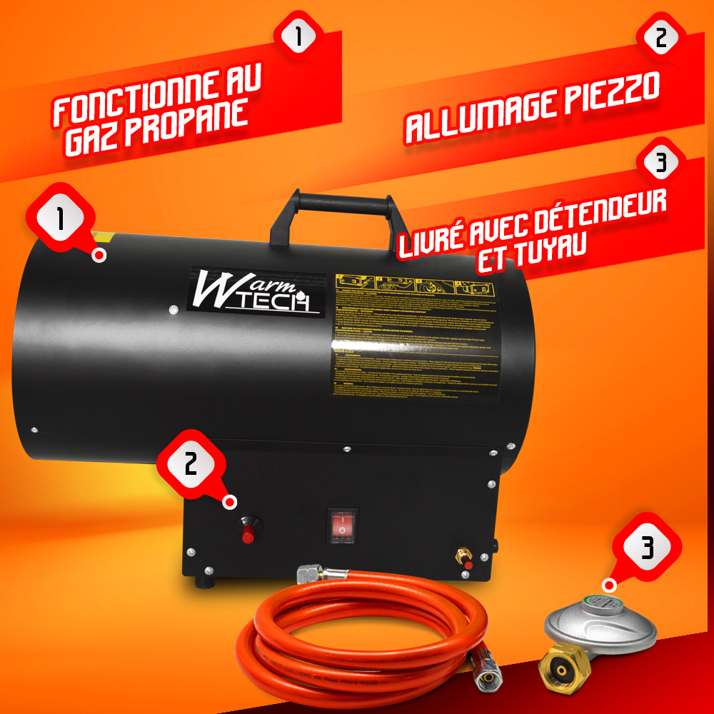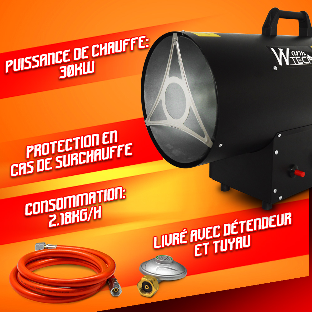 | Libellé | Canon à chaleur au gaz 30 KW - 650 mètre cube/H - Warm Tech |
