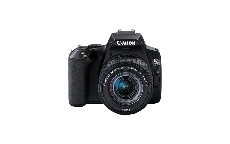 Canon EOS 250D + EF-S 18-55mm f/4-5.6 IS STM. Type d'appareil photo: Kit d'appareil-photo SLR, Mégapixel: 24,1 MP, Type de capteur: CMOS, Résolution d'image maximale: 6000 x 4000 pixels. La sensibilité ISO (max): 51200. Longueur focale: 18 - 55 mm. Wifi. Type HD: 4K Ultra HD, Résolution vidéo maximale: 3840 x 2160 pixels. Taille de l'écran: 7,62 cm (3"), Écran tactile. Viseur d'appareil photo: Optique. PictBridge. Poids: 449 g. Couleur du produit: Noir