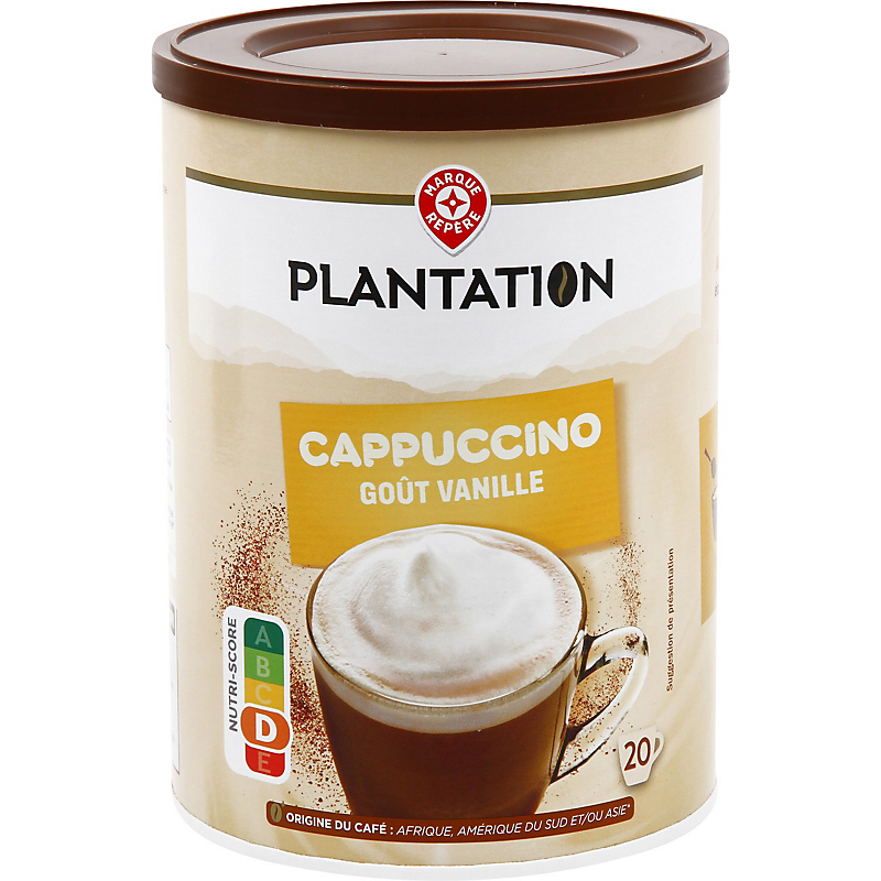 Préparation en poudre pour boisson instantanée à base de poudre de lait écrémé et de café soluble, goût vanille PLANTATION