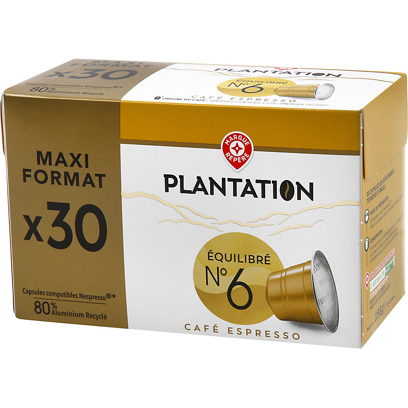 Capsules aluminium de café équilibré x 30 - 156 g - PLANTATION
