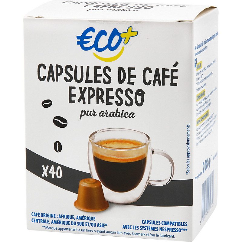 Super capsules d'arabica pour un prix imbattable ! J'utilise une machine Nespresso Delonghi et j'avais des a priori concernant la marque éco+ mais je suis pleinement satisfaite de ces capsules !