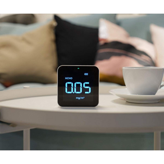 Le Temtop M10 permet de suivre en temps réel la qualité de l'air ambiante présent dans votre maison, il peut lire en temps réel les niveaux de PM2,5, HCHO, TVOC et AQI grâce à un capteur électrochimique professionnel. C'est un appareil facile à utiliser, il est doté d'un bouton qui se trouve sur le haut de l'appareil et qui permet la mise en marche et l'arrêt de l'appareil mais aussi de changer l'interface pour chaque polluant avec un double-clic. Il offre une grande précision dans ces calculs avec une plage de mesure de 0 ~ 999 ug / m³ pour les PM2,5 ; 0 ~ 5 mg / m³ pour les TVOC ; et de 0 ~ 2 mg / m³ pour le HCHO.