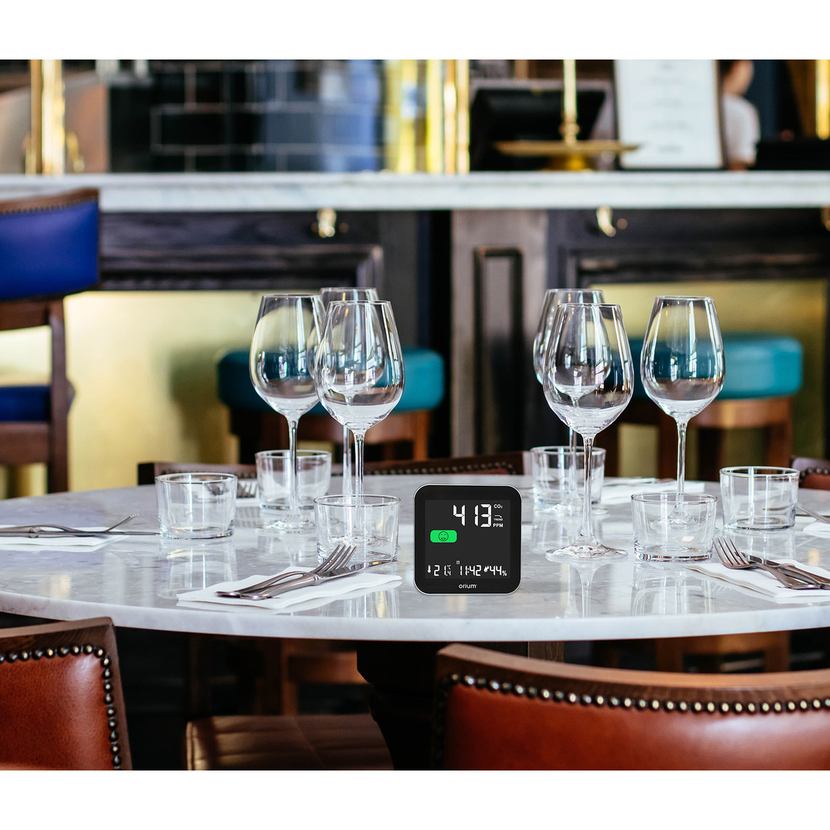 De plus, une alarme sonore est émise lorsque le taux de concentration en CO2 de la pièce dépasse le taux d'alerte défini. L'alarme est personnalisable selon le seuil de détection souhaité et peut ainsi s'adapter aux différents protocoles (France, Belgique...). Cette alarme peut se désactiver en cas de besoin.