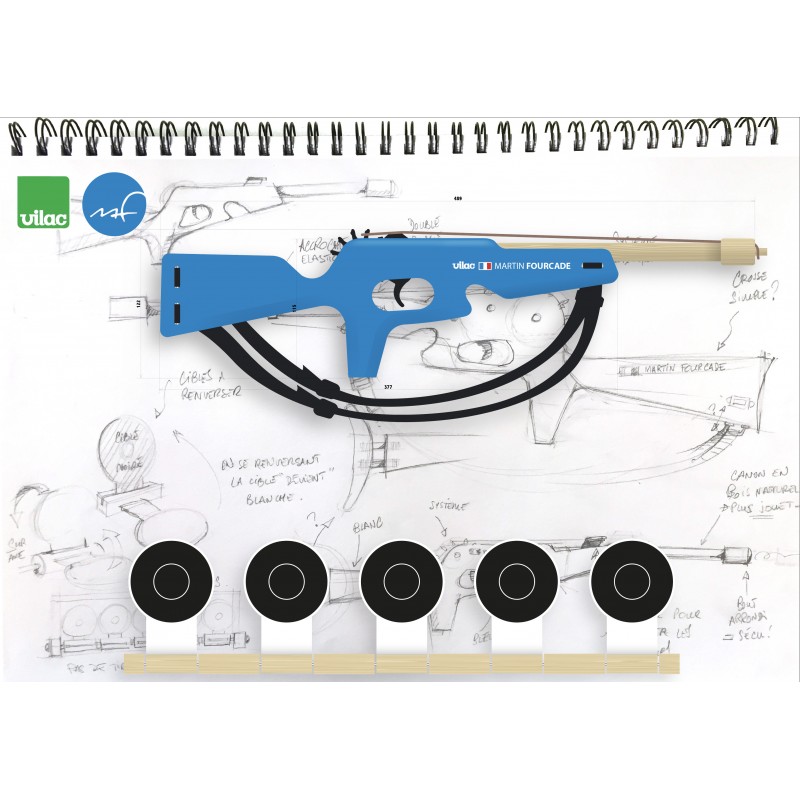 Un set de biathlon pour faire comme notre merveilleux multiple Champion Olympique et Champion du Monde Martin Fourcade. Contient une carabine en bois décoré, un pas de tir, un livret explicatif et 20 élastiques. Dès 5 ans. Carabine de 50 cm de long.