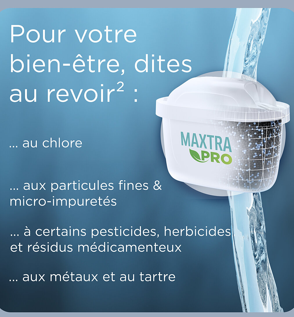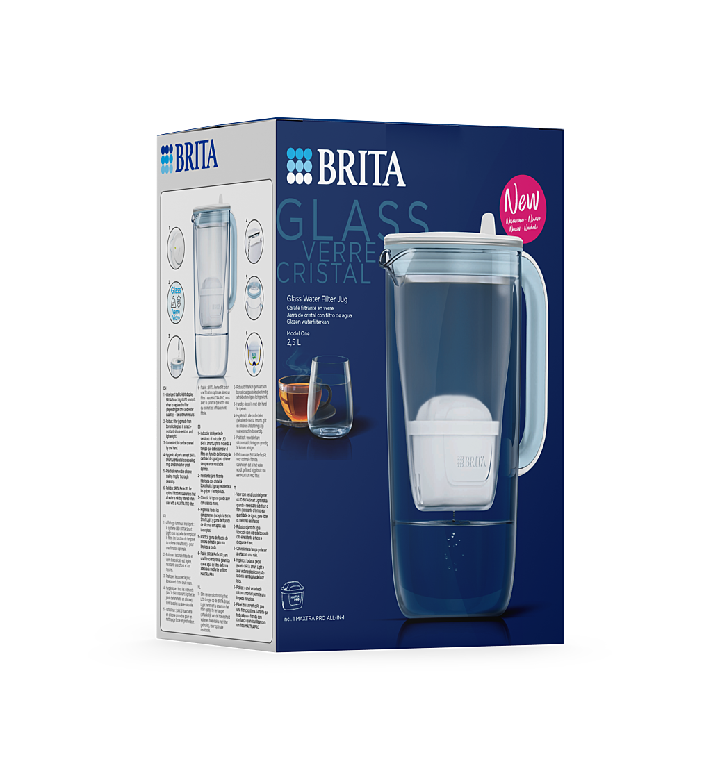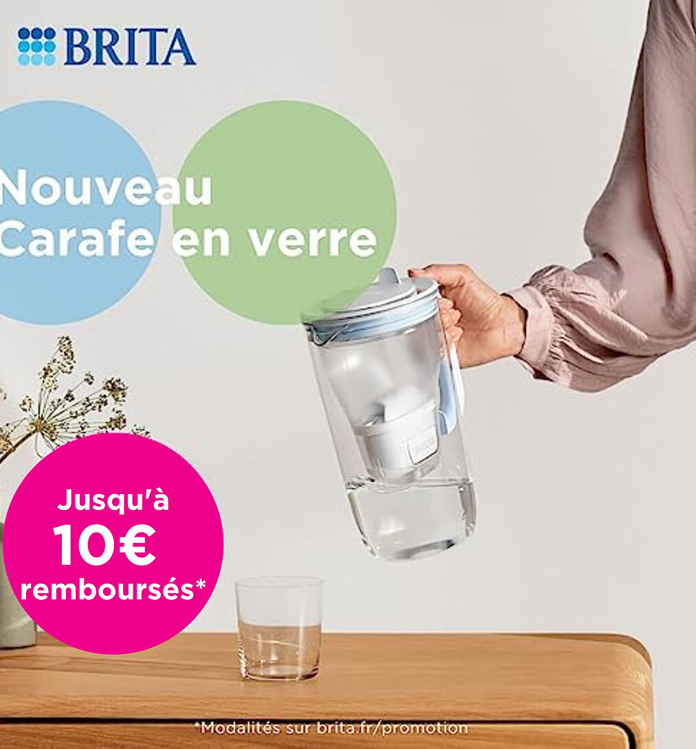 La première carafe en verre BRITA Elle allie un design minimaliste avec des caractéristiques haut de gamme et contribue à préserver l'environnement - Legère : la carafe en verre BRITA est fabriquée à partir de verre borosilicate robuste, résistant à la chaleur et hygiénique - Filtration innovante : réduit* certains pesticides, herbicides et résidus médicamenteux, les substances pouvant impacter le goût et l'odeur de l'eau du robinet comme le chlore, le tartre et certains métaux - L'indicateur de changement de cartouche LED BRITA Smart Light indique quand remplacer le filtre - au bout de 4 semaines ou 150L d'eau filtrée - Pratique : facile à remplir grâce au couvercle rabattable, lavable au lave-vaisselle jusqu'à 60°C (sauf le BRITA Smart Light et le joint d’etanchéité en silicone) Soyez acteur du changement. Parce que chaque bouteille plastique à usage unique évitée compte. Avec chaque produit BRITA, vous contribuez activement à réduire le nombre de bouteilles plastiques à usage unique qui finissent à la poubelle. 1 cartouche MAXTRA PRO permet de filtrer 150L d'eau et donc d’économiser jusqu’à 150 bouteilles plastiques à usage unique d’un litre. De plus, les cartouches filtrantes BRITA MAXTRA PRO, fabriquées à partir de 50% de matériau biosourcé, sont recyclables si rapportées dans un point de vente participant au programme de collecte BRITA. Pour en savoir plus, allez sur https://www.brita.fr/trouver-magasin. L'utilisation de matériau biosourcé joue un rôle essentiel dans la réduction de notre dépendance aux énergies fossiles et contribue à réduire les émissions de CO2. BRITA, une expérience d‘hydratation durable depuis 1966. Qualité et design allemands. *Si présents dans l'eau du robinet