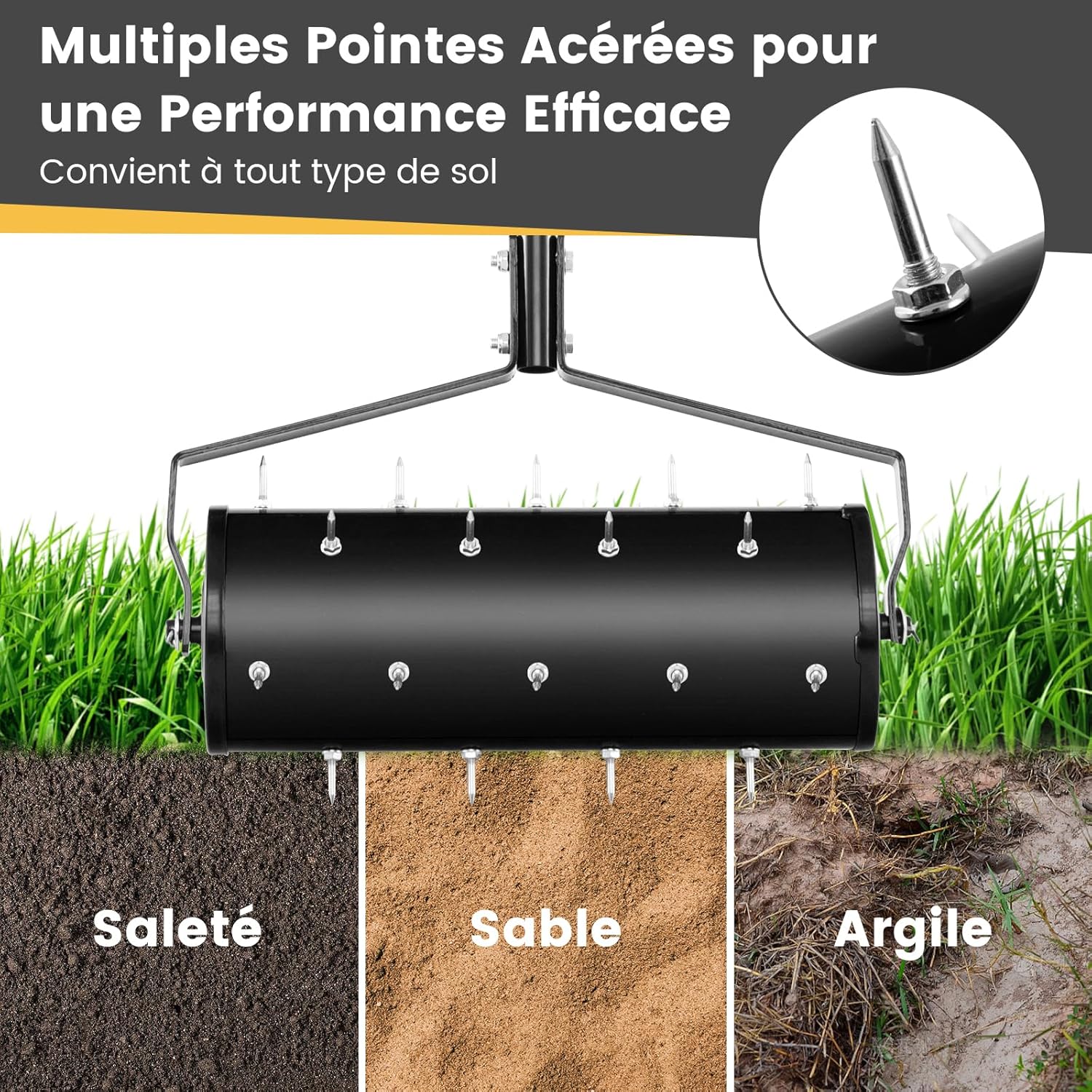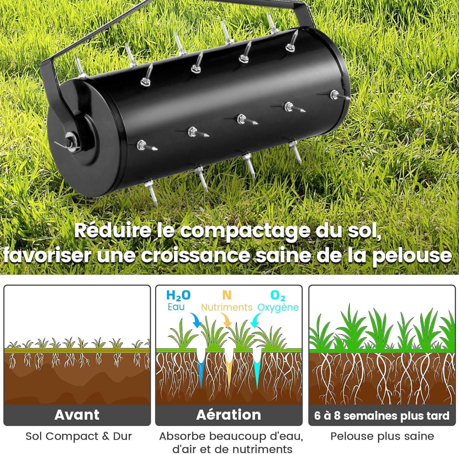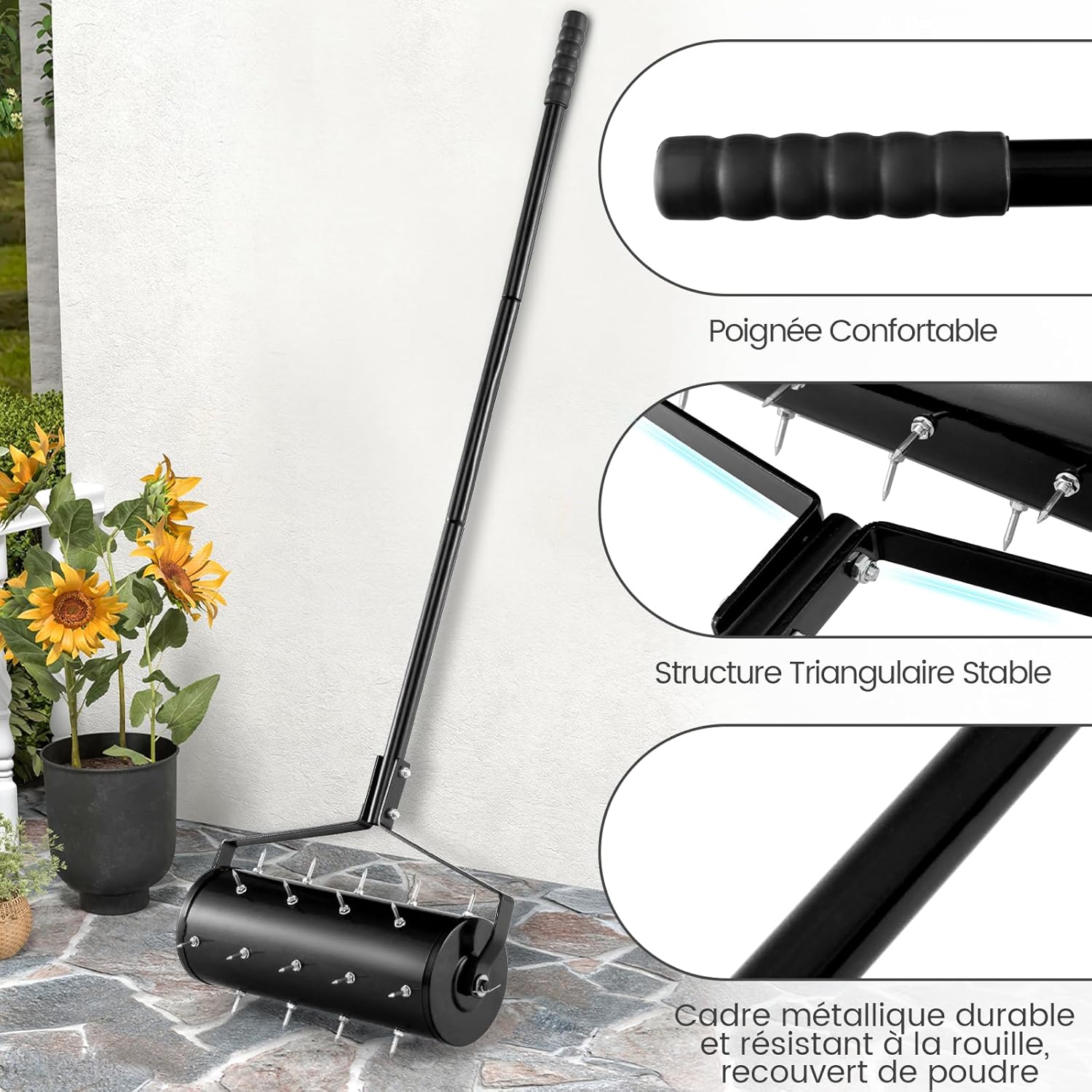 | Libellé | Carificateur 27 Dents, Scarificateur Tambour Lesté, Aérateur Métallique Gazon, Poignée Antidérapante |