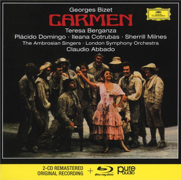 eutsche Grammophon poursuit sa série de rééditions d'opéras légendaires bénéficiant d'une nouvelle remasterisation en 24bit/96khz. L'enregistrement triomphal de Carmen de Bizet par Claudio Abbado, avec le London Symphony Orchestra, Teresa Berganza, Plácido Domingo, Ileana Cotrubas et Sherrill Milnes est présenté dans un élégant coffret, sur un Blu-Ray Audio haute définition en son 2.0 et surround 5.1 ainsi que sur 2CD pressés à partir du nouveau master. .