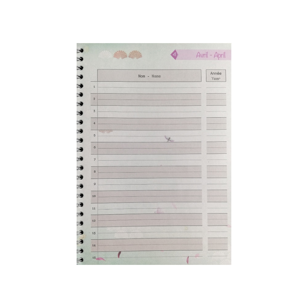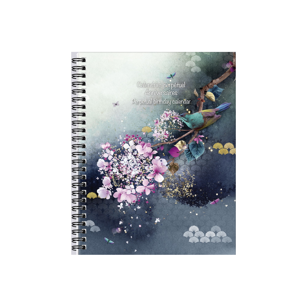 Libellé Carnet Calendrier Perpétuel Anniversaires - Chacha - Sakura Oiseau Modèle 2