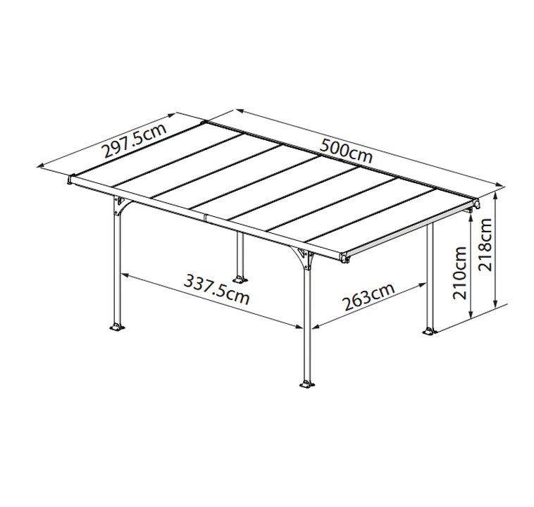 Dimensions P x L x H : 500 x 297,5 x 218 cm.