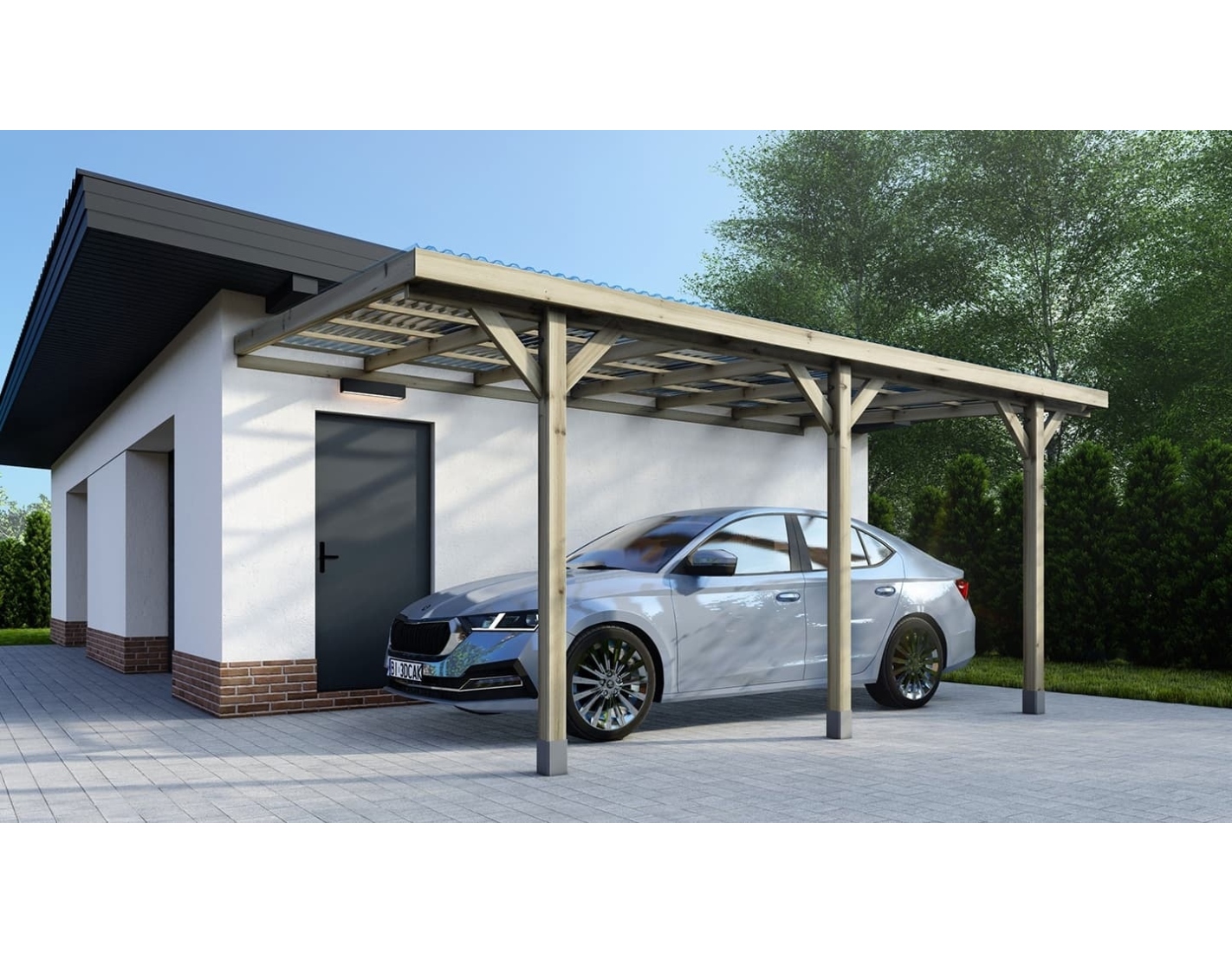 CARPORT, ABRI DE VOITURE EN BOIS CAR7-2PVCTR - DURABILITÉ PENDANT DES ANNÉES, HAUTE QUALITÉ, PRATIQUE, TRAITÉ