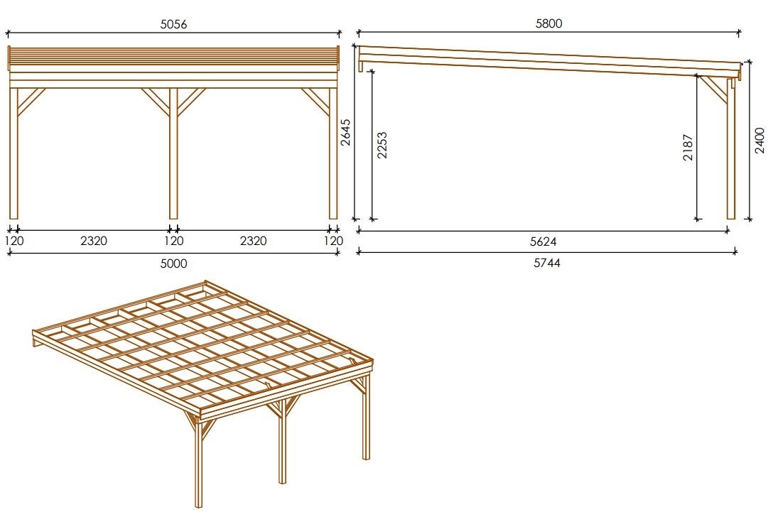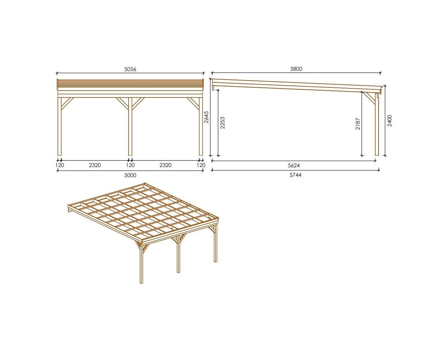 Le carport proposé CAR23, d'une largeur de 5.8 m et d'une profondeur de 5.06 m, avec une hauteur d'entrée de 2.19 m, peut être utilisé comme abri de voiture ou par exemple comme abri de terrasse. L'assemblage du carport avec les instructions incluses ne pose pas de problème.