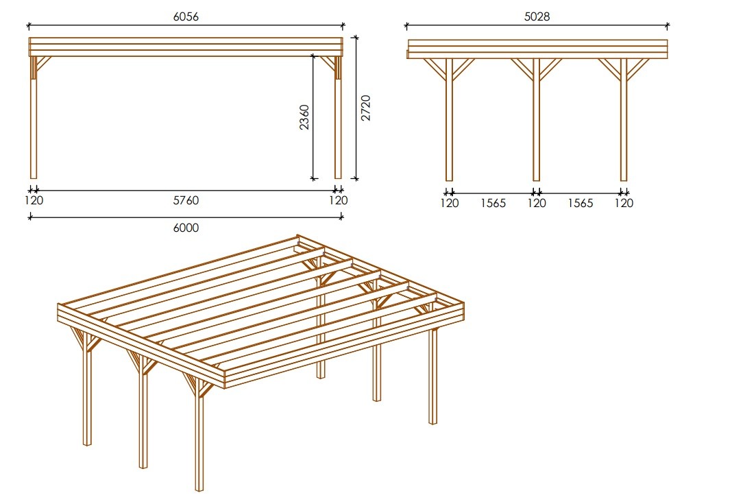 Le carport proposé CAR5, d'une largeur de 6.06 m et d'une profondeur de 5.03 m, avec une hauteur d'entrée de 2.36 m, peut être utilisé comme abri de voiture ou par exemple comme abri de terrasse. L'assemblage du carport avec les instructions incluses ne pose pas de problème.