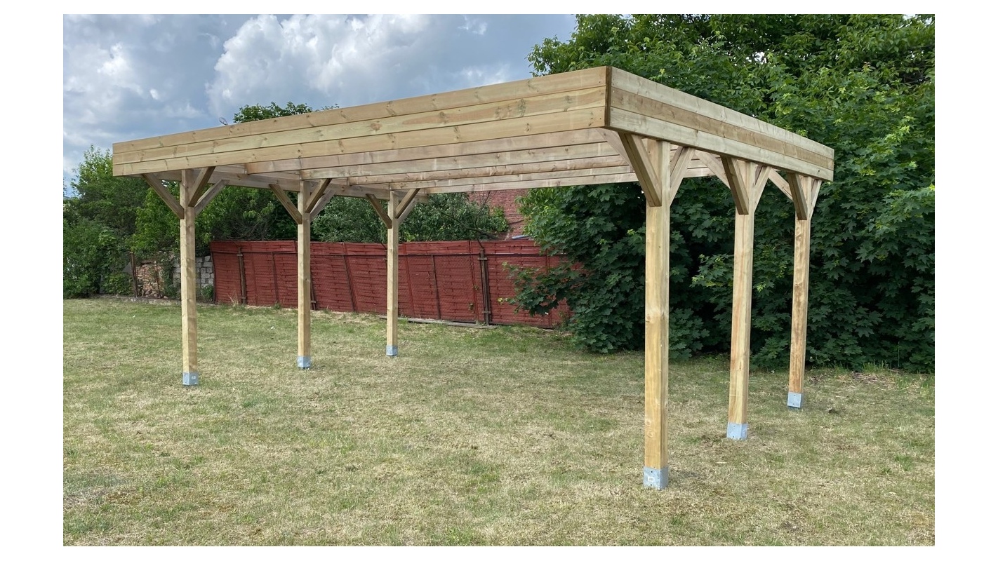 CARPORT, ABRI DE VOITURE EN BOIS CAR5 - DURABILITÉ PENDANT DES ANNÉES, HAUTE QUALITÉ, PRATIQUE, TRAITÉ