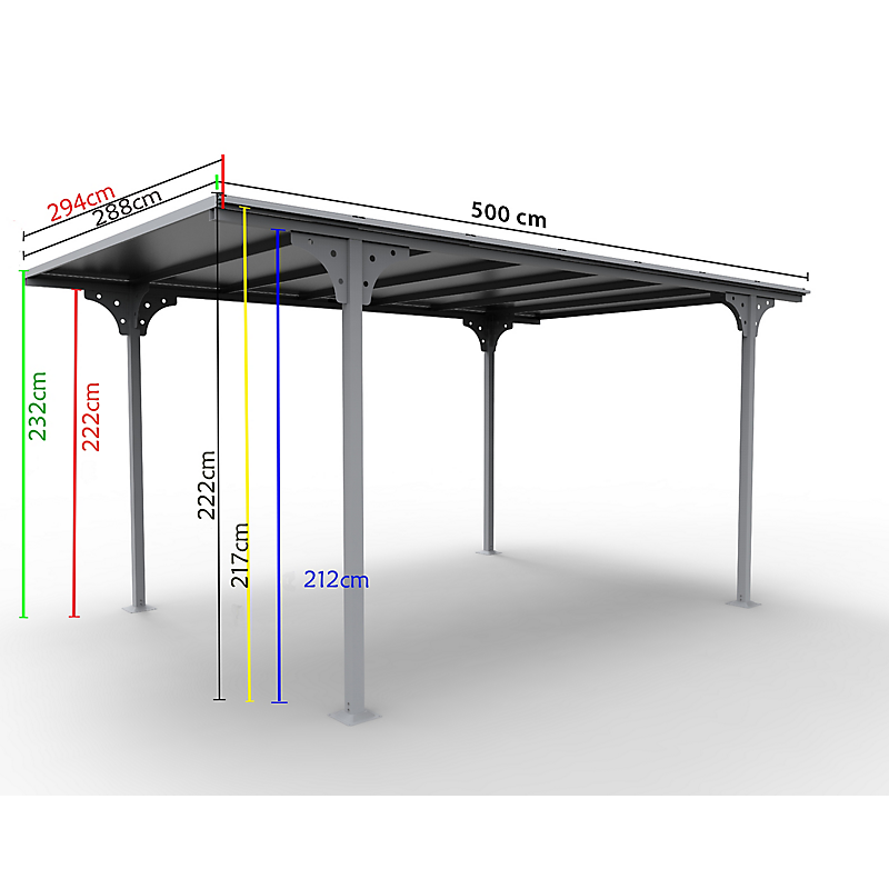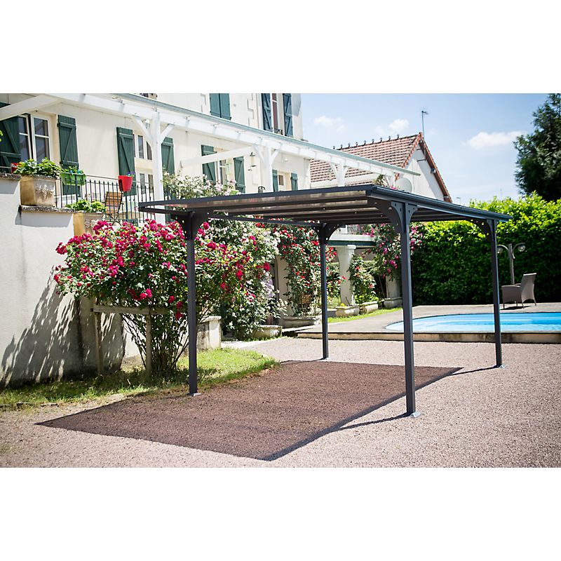 | Libellé | Carport ALUMINIUM toit plat coloris gris anthracite / surface extérieure : 14,70 m2 / toit avec plaques en POLYCARBONATE ANTI-UV 6 mm |