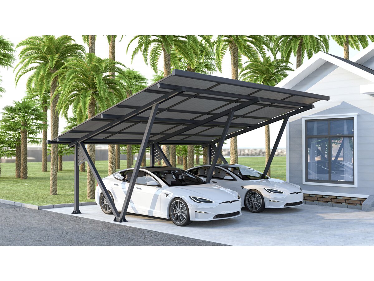 Carport solaire avec panneaux photovoltaïques - 715 x 575 x 366 cm - Gris - 8,2 kW
