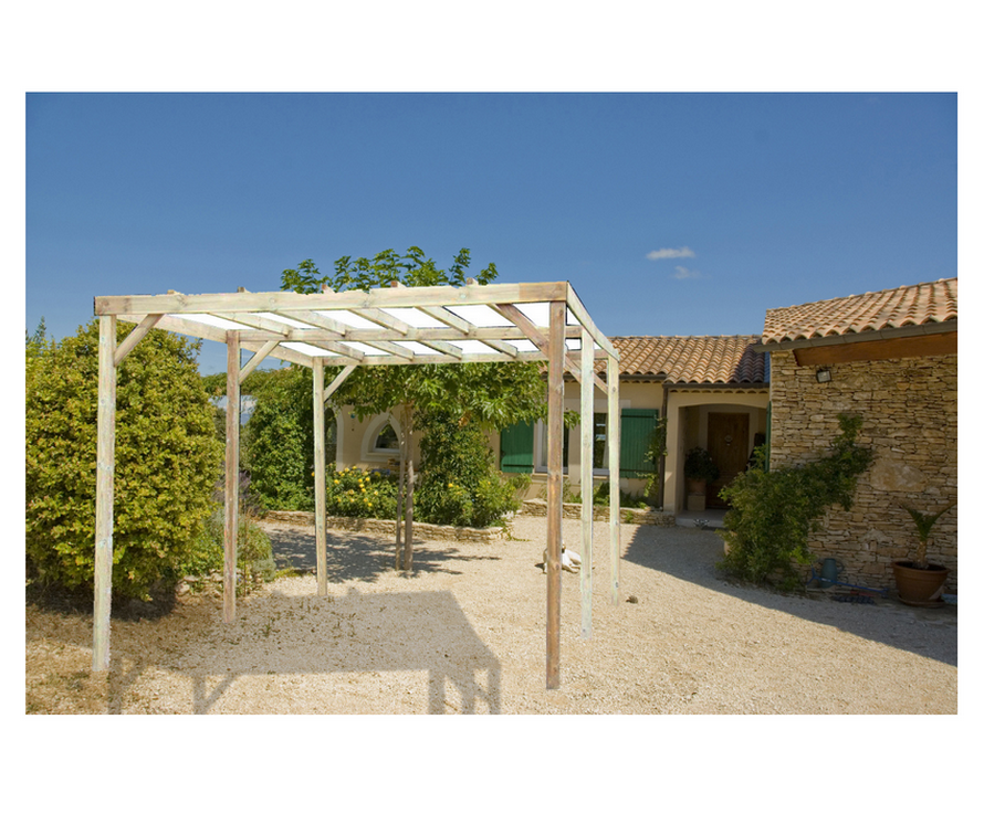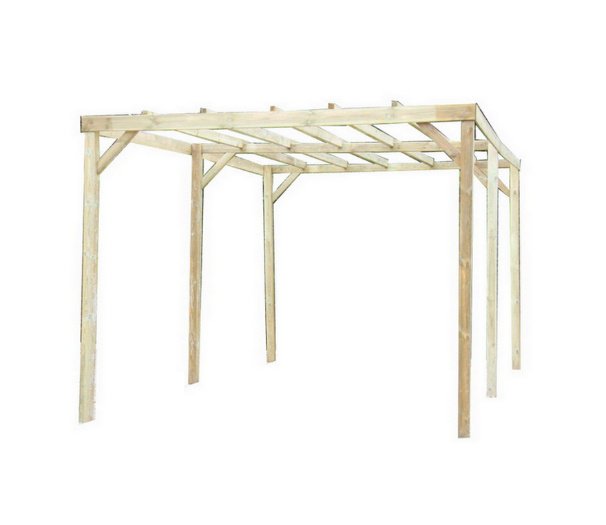 car3050a2 - carport traité autoclave 15 m² sans couverture - Carport Habrita CAR3050A2 traité autoclave pour une grande longévité. Carport de décoration pour couverture avec canisse et plantes grimpantes. Fixation au sol des poteaux non fournies.