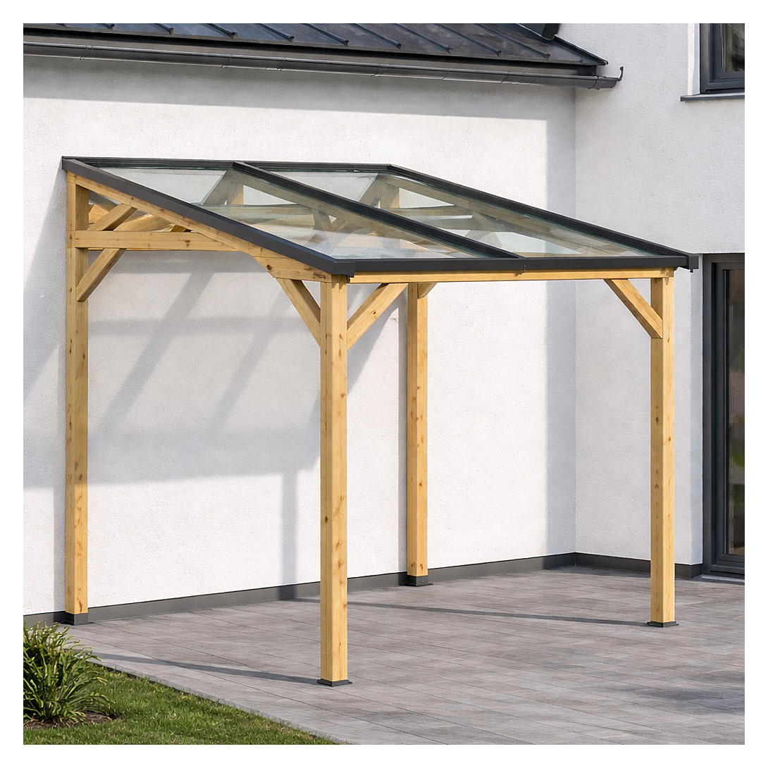 Carport Wattoit mono pente épicéa thermo-chauffé / 2 panneaux photovoltaïques 1 kwc / poteaux section 88