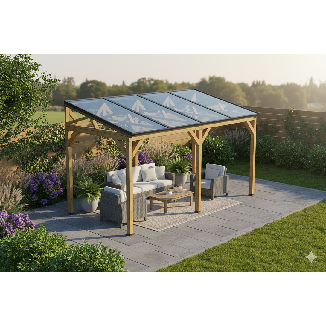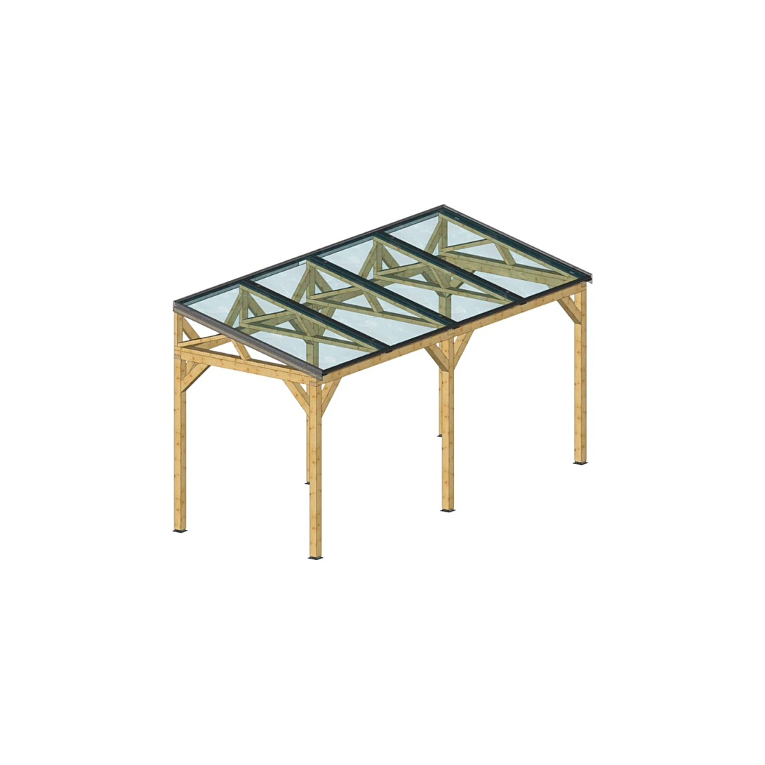 Carport Wattoit mono pente épicéa thermo-chauffé / 4 panneaux photovoltaïques 2 kwc / poteaux section 88