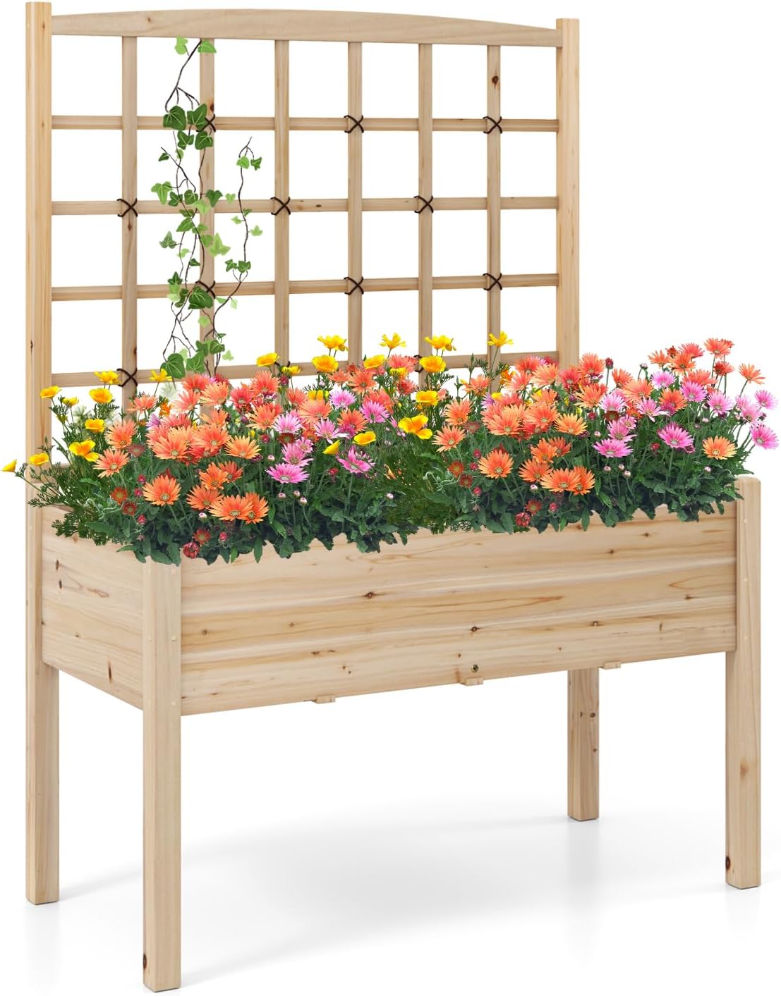 | Libellé | Carré potager sur pieds avec treillis, bac à fleurs en bois avec pieds, pour plantes grimpantes,naturel |