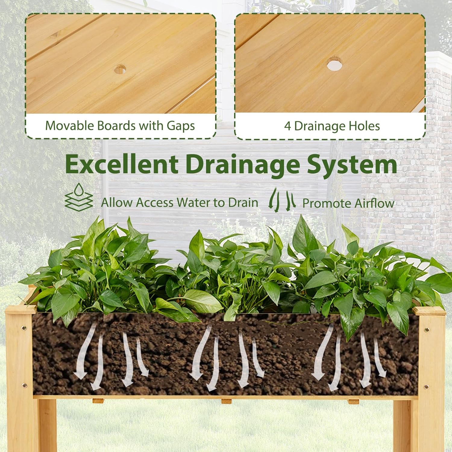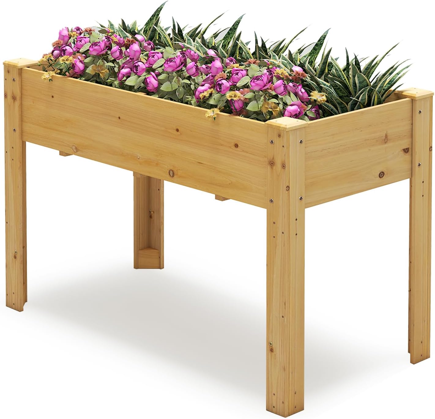 Carré potager sur pieds en bois de sapin, jardinière surélevée extérieure avec trou de drainage,naturel