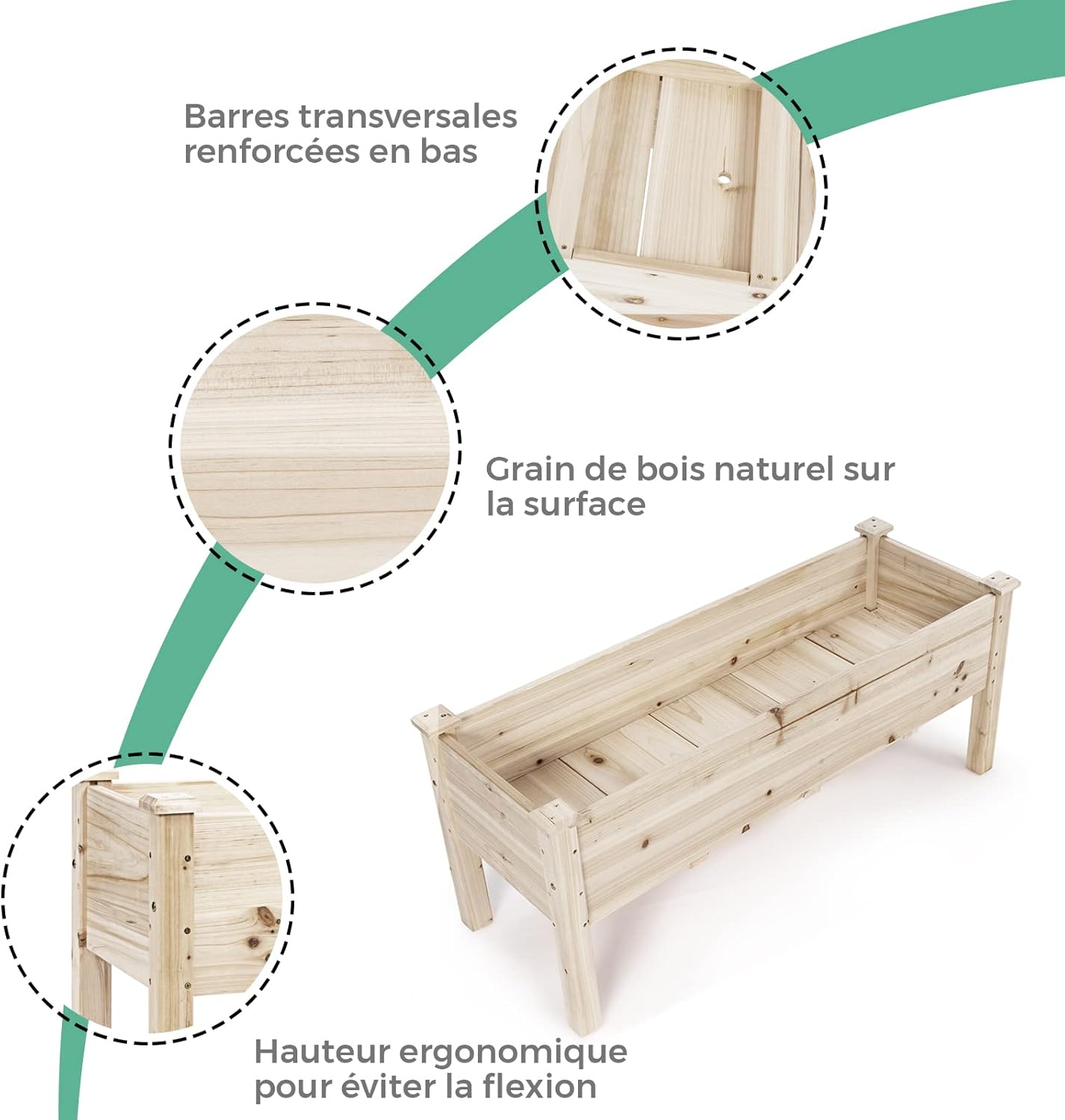 | Libellé | Carré potager sur pieds, jardinière en bois avec 5 trous de drainage pour légumes, herbes, fleurs,naturel |