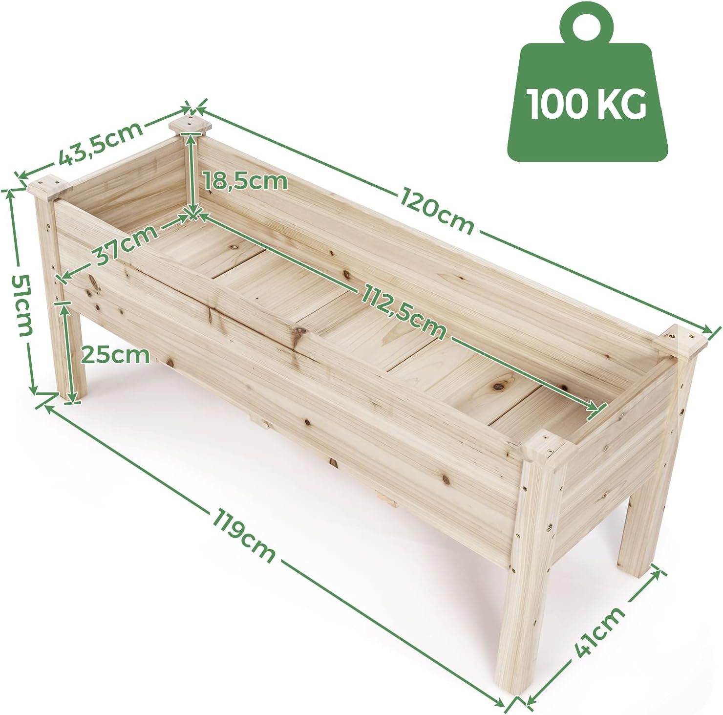 - Matériau de sapin et une grande charge : Ce lit surélevé jardinière est faite de matériaux de sapin solides, la structure du cadre est durable et garantit une utilisation à long terme. La charge peut atteindre 100kg. Par conséquent, vous n’avez pas à vous soucier du lit étant facilement écrasé, vous pouvez l'utiliser en toute confiance.
