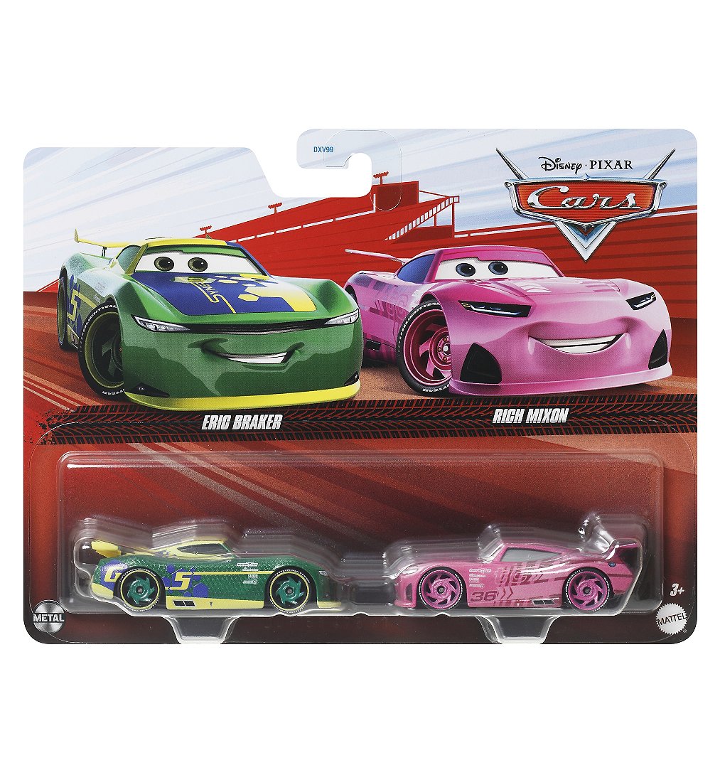 Ces packs de 2 véhicules donnent vie aux meilleures scènes du film Cars 3 de Disney•Pixar ! Chaque véhicule est à l'échelle 1:55 avec de nombreux détails, des couleurs emblématiques, des logos du film et bien d'autres références. Les fans des films vont adorer ces duos de personnages ! Déballe-les et recrée l'action et les aventures du film dès l'ouverture de la boîte ! Choisis entre Flash McQueen dans le rôle de Chester Whipplefilter avec Luigi & Guido, Sterling & Cruz Ramirez, Bobby Swift & Cal Weathers, Flash McQueen & Sally, Mini & Van, Rusty & Dusty, et Chick Hicks avec casque audio & Natalie Certain. Tous les coffrets de 2 produits sont vendus séparément, certains produits peuvent ne pas être commercialisés.
