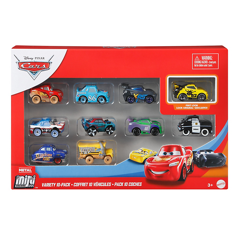 Vivez des aventures palpitantes avec ces coffrets de mini-véhicules très variés inspirés du film Cars de Disney Pixar. Chaque véhicule comporte une carrosserie en métal, de véritables roues et des détails authentiques. Collectionnez tous les coffrets de 10 mini-véhicules pour recréer les scènes de Cars les plus folles et les plus drôles ! Chaque coffret de mini-véhicules inclut un véhicule inédit, pour en faire une collection d’exception !