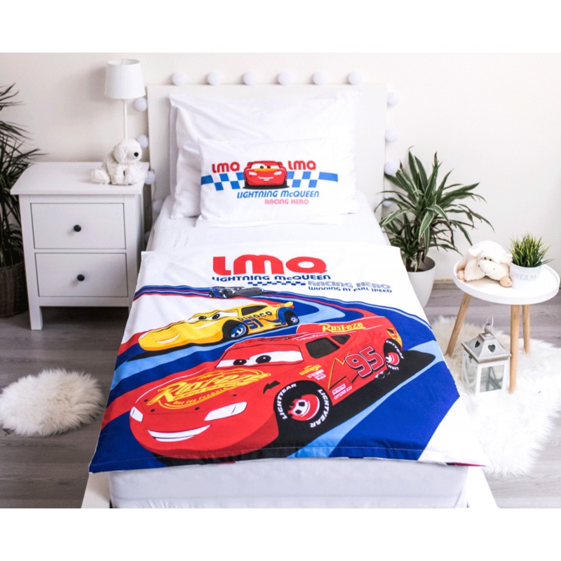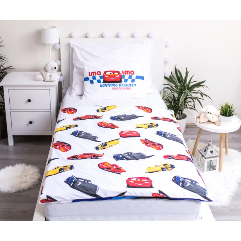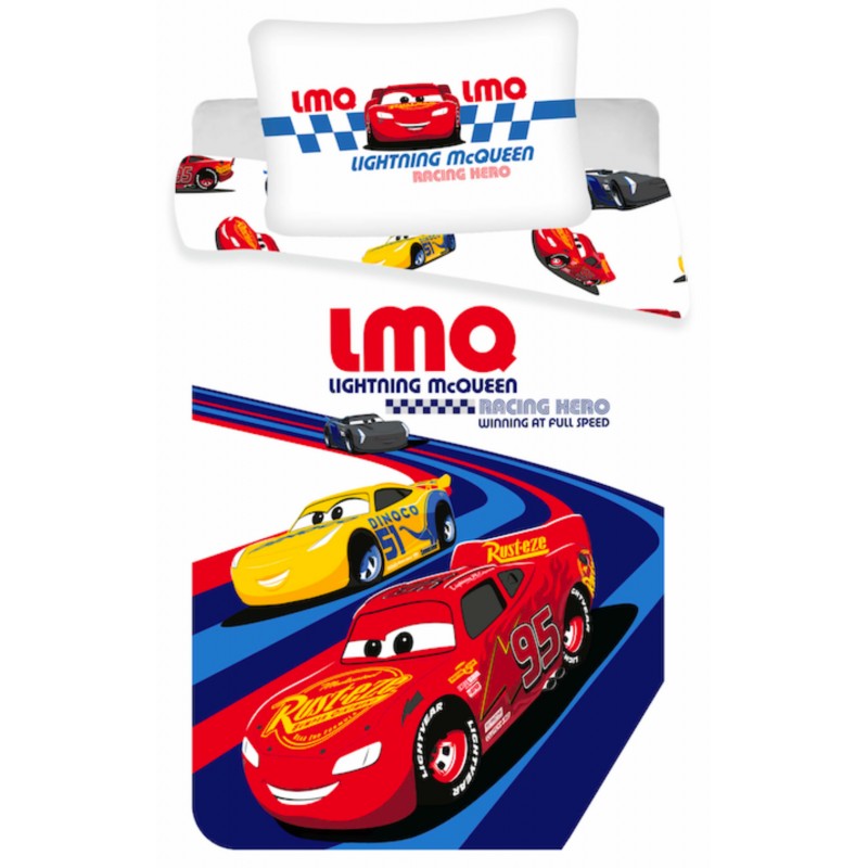 Cars Disney Racing - Parure de Lit Bébé Coton - Housse de Couette 100x135 cm Taie 40x60 cm