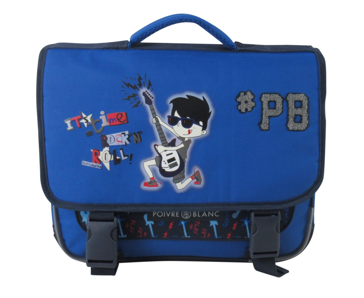 CARTABLE POIVRE BLANC 38CM, RABAT AVEC FERMETURE À BOUCLES EN PLASTIQUE, 2 COMPARTIMENTS INTÉRIEURS, 1 POCHE OUVERTE SUR LE DEVANT, BRETELLES RÉGLABLES AVEC MOUSSE, BASE/DOSSIER RENFORCÉ