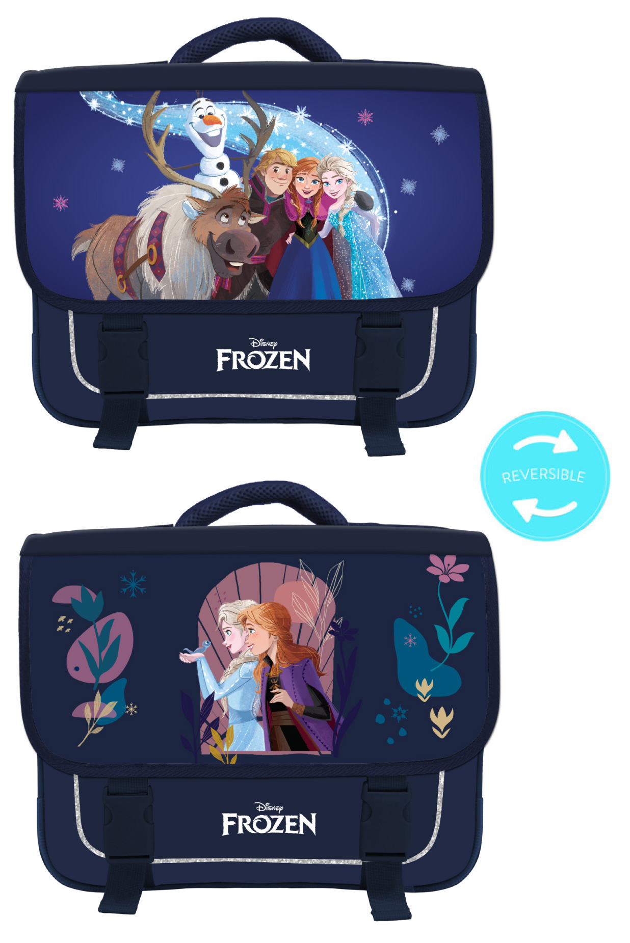 Cartable avec rabat réversible par velcro La Reine des Neiges Polyester 38 cm 0,66 kg 2 compartiments, 1 poche devant sous rabat Bretelles et dos matelassées, fond renforcé Rabat réversible avec 2 design differents