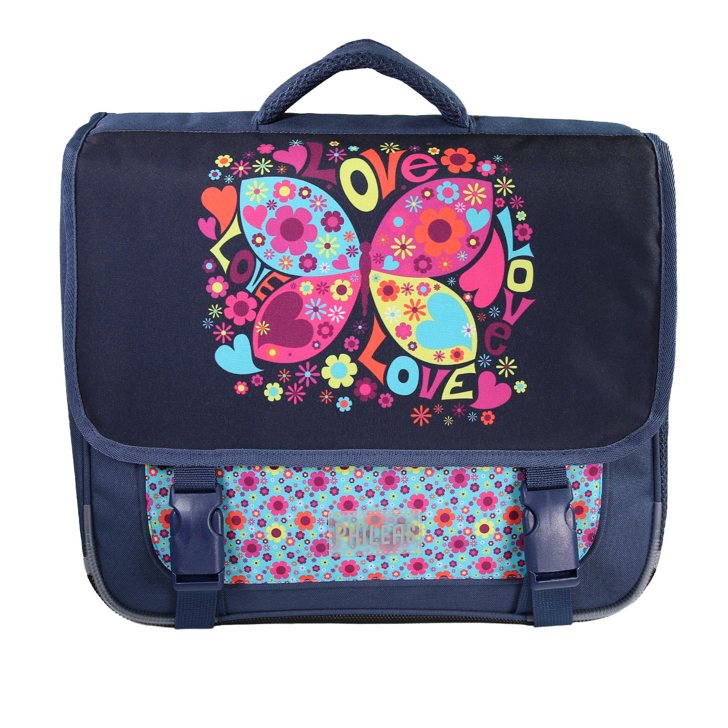 | Libellé | Cartable Scolaire Primaire 38cm Phileas - Papillon Bleu Marine 2 Compartiments - Bagtrotter |