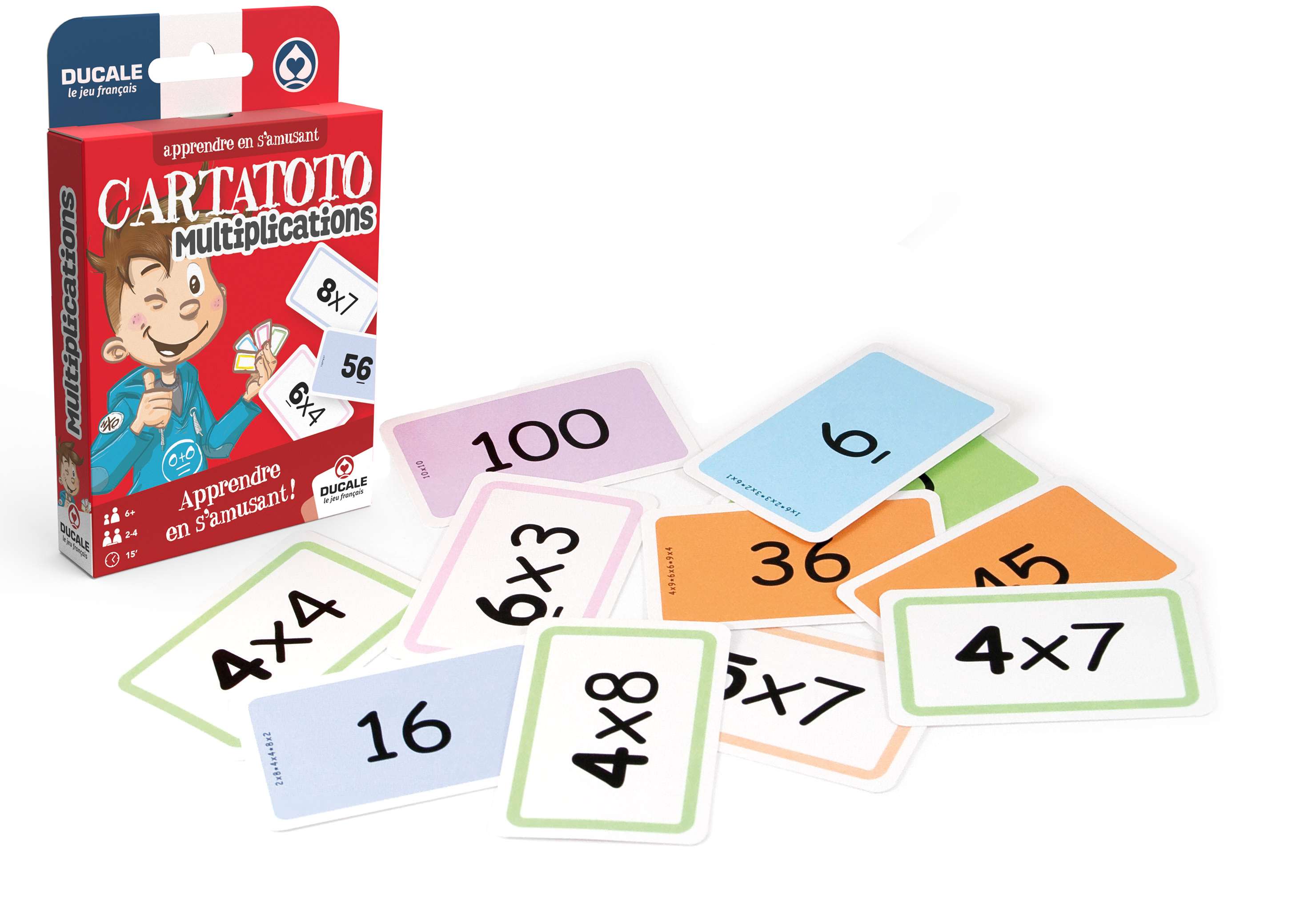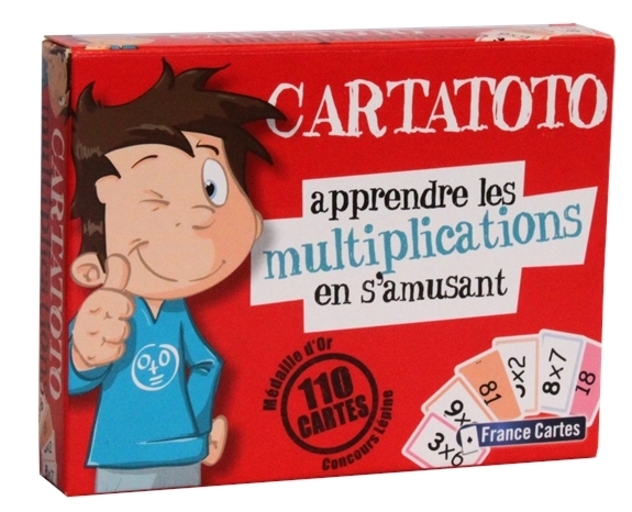 Apprendre et réviser les multiplications en s'amusant, c'est possible avec le jeu de cartes éducatif Cartatoto ! Les cartes sont recto/verso pour aider l'enfant à compter. On retrouve d'un côté une multiplication, et au dos le résultat correspondant à celle-ci. Ce procédé permet de jouer à différentes règles de jeux pour un apprentissage ludique par niveaux de difficulté : Batailles, jeu de Mémoire... Un jeu éducatif pour enfant idéal pour faciliter la découverte, l'apprentissage et la révision d'opérations simples, avec des règles faciles. Créé par Fabienne MATHE, Cartatoto est un jeu Médaille d'or au concours Lépine. Dès 6 ans, de 1 à 4 joueurs Contient 110 cartes