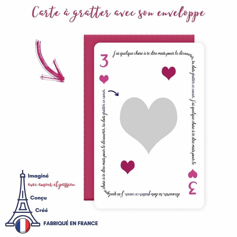 ANNONCER L'ARRIVÉE DE BÉBÉ avec nos cartes à gratter pour une annonce originale et remplie d'émotions ! Un souvenir unique et précieux qui fera sourire la personne qui découvrira le message. UNE ANNONCE DRÔLE et émouvante à partager avec le monde entier ! Pour découvrir le message, il suffit de gratter le cœur secret et le message sera alors dévoilé ! Une carte qui pourra être gardé en souvenir de ce moment inoubliable. LA CARTE est accompagnée de son enveloppe colorée bleue. Carte 10 X 15 cm / Papier 350gr de très belle qualité EXISTE en version Solo : Papa - Papy - Mamie - Tonton - Tatie - Parrain - Marraine - Famille Duo : Papy & Mamie - Tatie & Tonton - Parrain & Marraine Pack de 5 cartes : Famille - C'est un garçon - C'est une fille - Ce sont des jumeaux COCORICOOO ! Nos créations sont 100% françaises ! Nous sélectionnons avec beaucoup de soin nos différents partenaires. Pour le conditionnement de nos produits, nous travaillons avec une entreprise adaptée qui a pour mission l’insertion professionnelle et sociale de travailleurs handicapés. IMAGINÉS avec Amour, Passion et Agréés par nos 3 filles ! Imaginées, pensées et conçues pour apporter le plein de bonheur dans toutes les familles !
