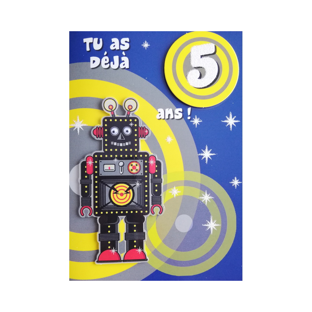 Détails : Carte anniversaire et son enveloppe Dimensions carte : 11.5 x 16.5 cm Thème : Anniversaire Modèle : 5 Ans Garçon