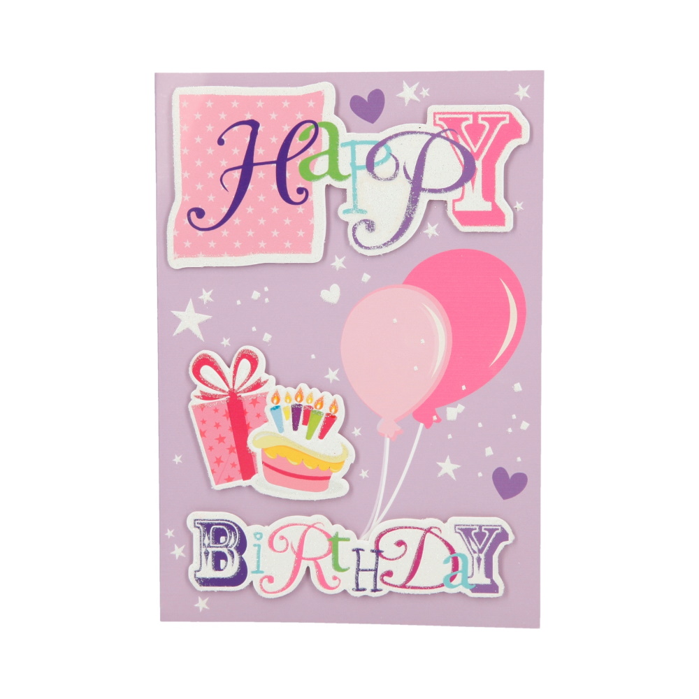Détails : Carte anniversaire et son enveloppe. Décorations en relief, mélange de matières Dimensions carte : 11.5 x 16.5 cm Thème : Anniversaire Modèle : Happy Birthday Ballons Roses