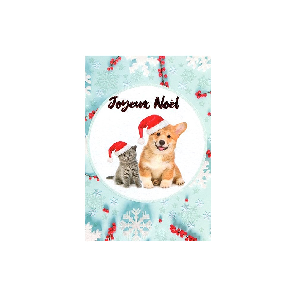 | Libellé | Carte De Voeux - Joyeux Noel Animaux Chien et Chat |