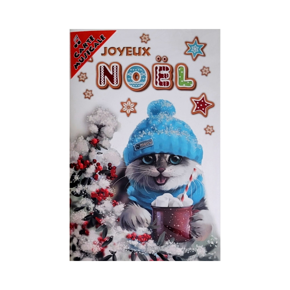 | Libellé | Carte De Voeux Musicale - Fêtes de Fin D'année - Joyeux Noël - Chat Bonnet Bleu |