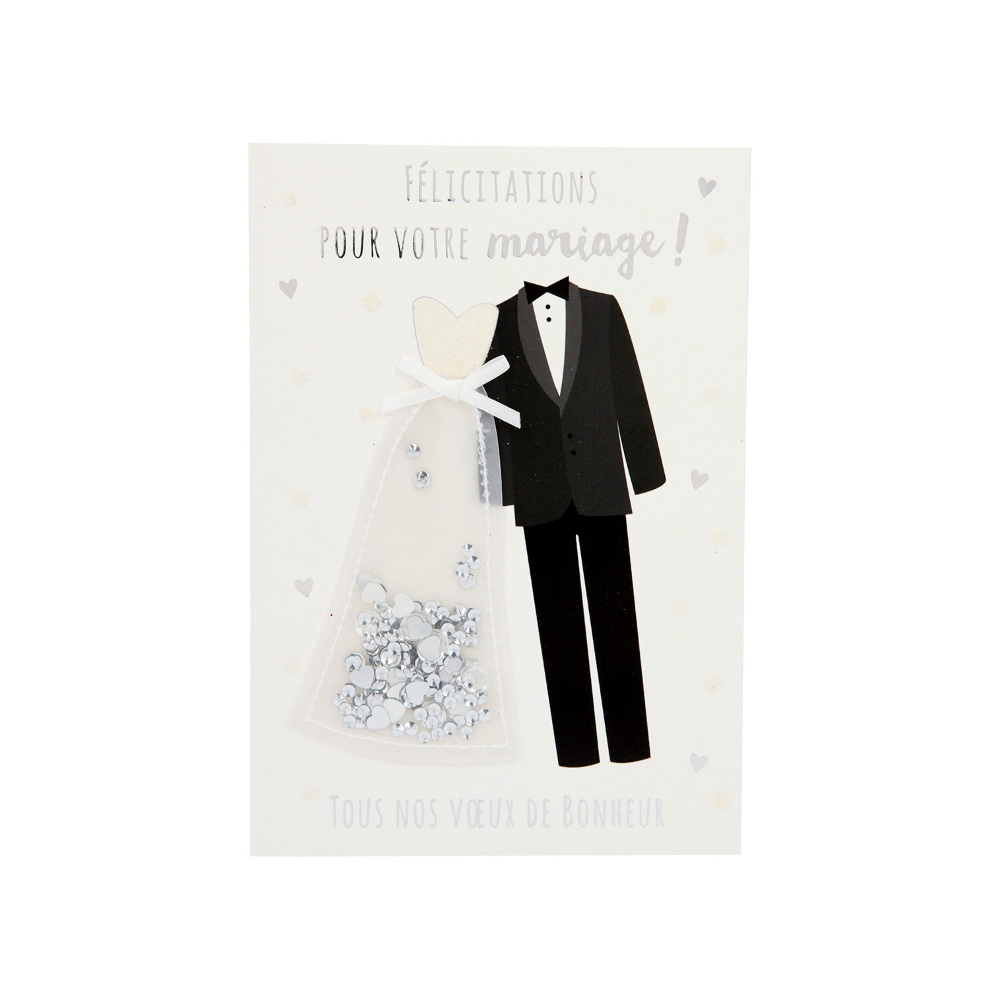| Libellé | Carte De Voeux Paillettes - Mariage - Félicitations Pour Votre Mariage ! |