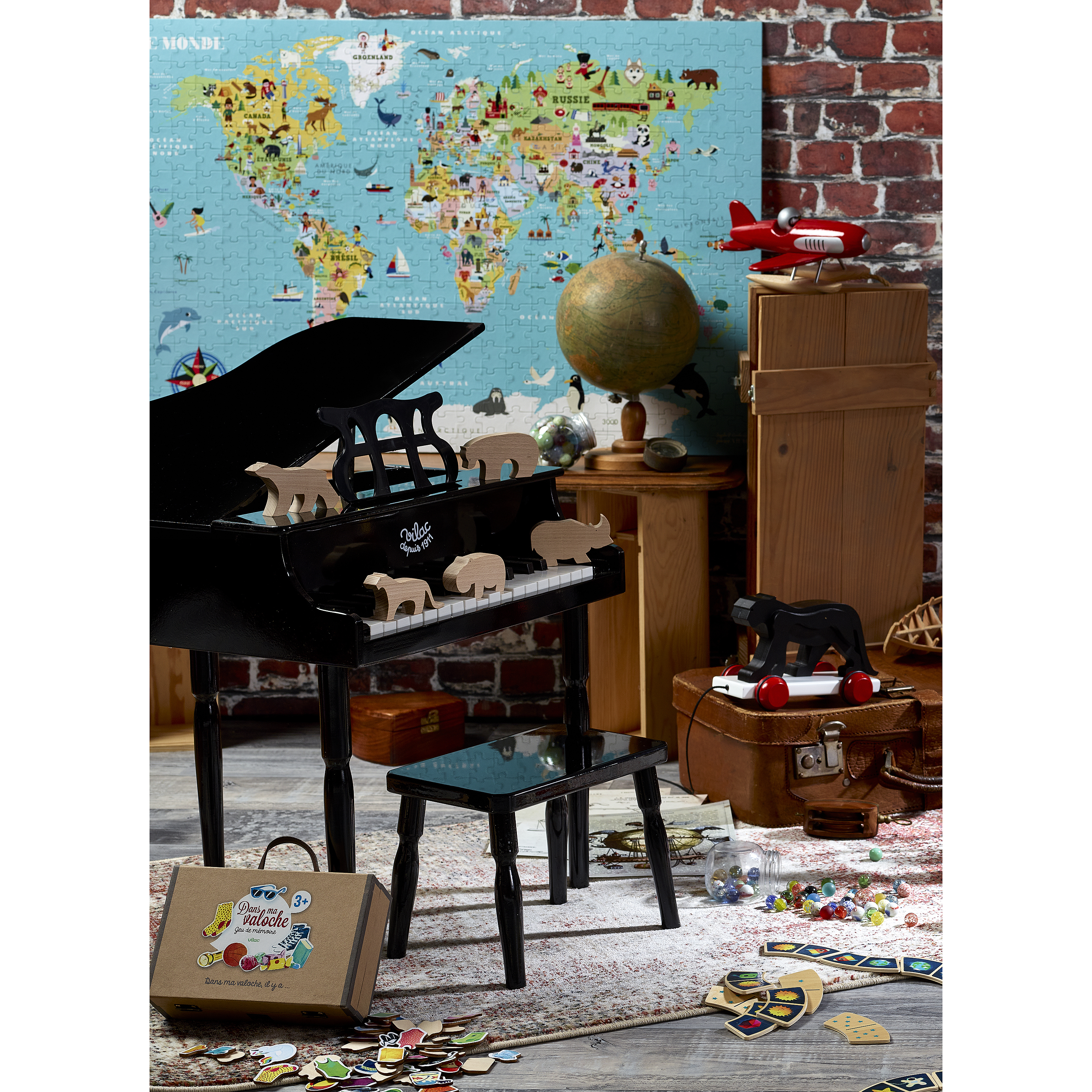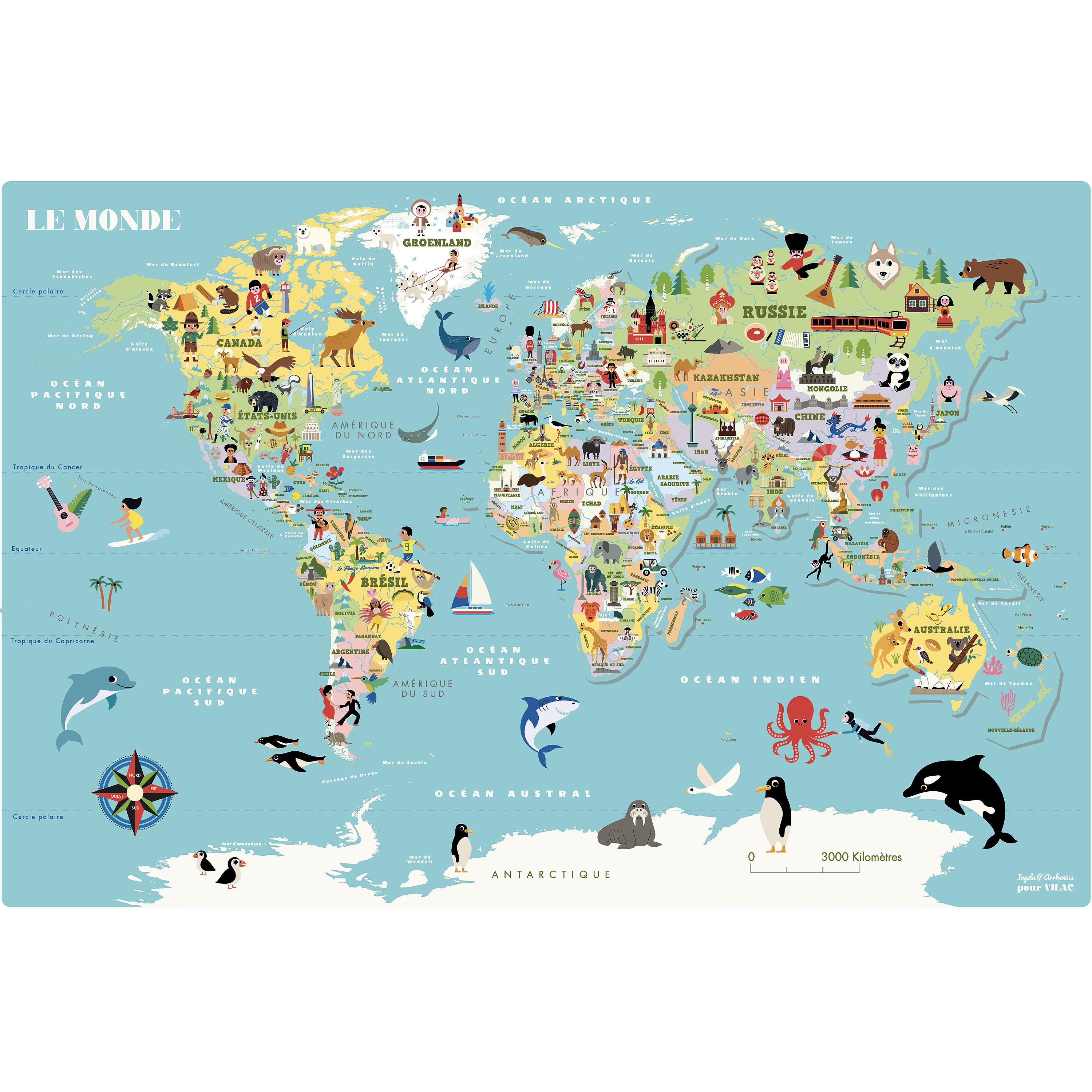 Joseph Kessel écrivait "Les grands voyages ont ceci de merveilleux que leur enchantement commence avant le départ même, On ouvre les atlas, on rêve sur les cartes. On répète les noms magnifiques des villes inconnues" C'est aussi avec talent et poésie qu'Ingela P. Arrhenius a dessiné cette très belle carte magnétique en bois pour que l'apprentissage de la géographie soit une invitation au voyage... Vilac 7612 - Jeu éducatif - En bois et magnets - Dès 7 ans. Contenu : 86 magnets en bois et 1 grand fond magnétique illustré.