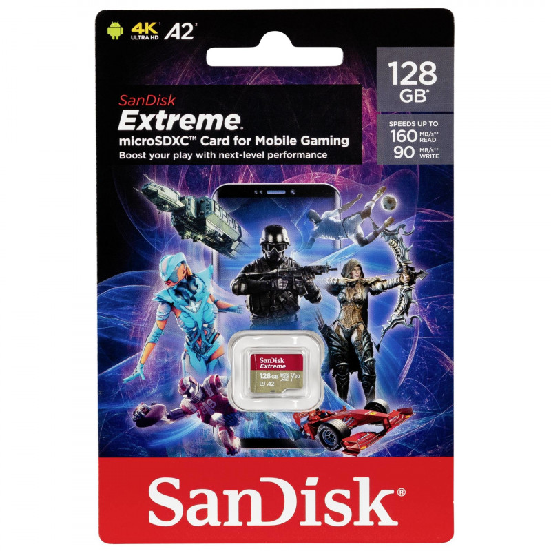 Carte M.SDXC Extreme, 128GB (A2/V30/U3/UHS-I/160MB/s) +Ad "Mobile Gaming"