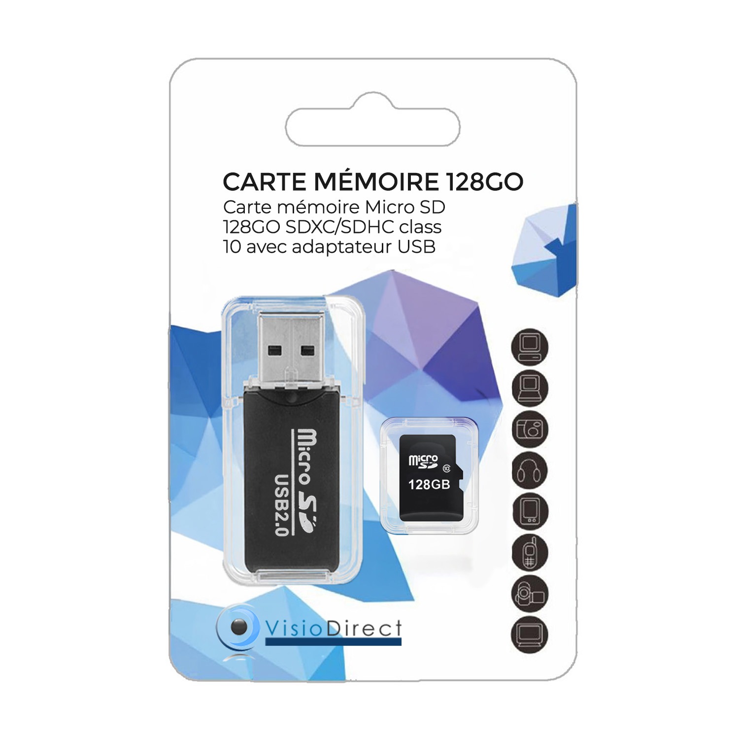 | Libellé | Carte Mémoire Micro SD 128 Go SDXC/SDHC Class 10 Haute Vitesse avec Adaptateur SD Noir - Visiodirect |