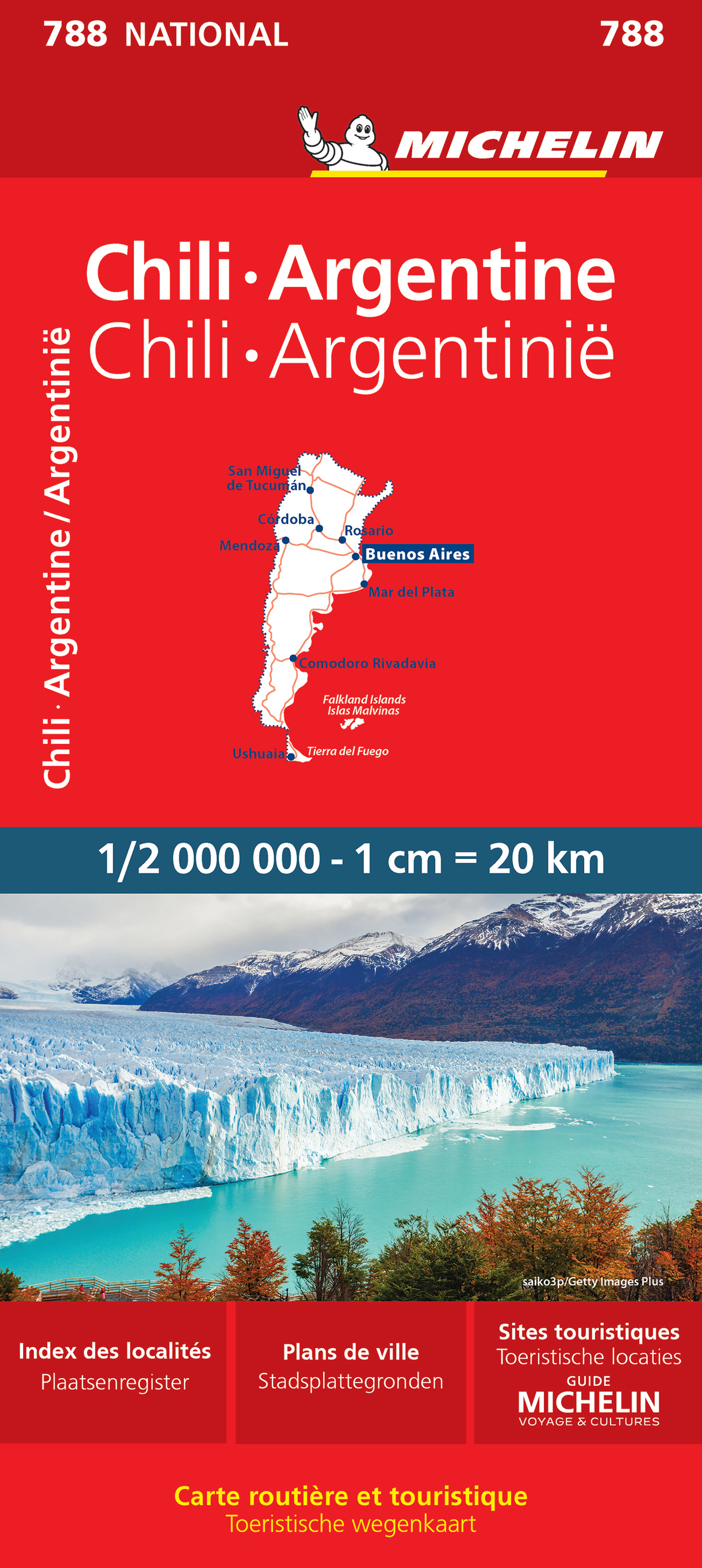Carte routière et touristique Michelin : pour être bien guidé et vraiment libre !Mise à jour chaque année la carte Chili Argentine au 1/2 000 000 (1cm = 20km) vous apporte une vue d'ensemble. Retrouvez l'index des localités, les plans de Santiago et Buenos Aires ainsi que les sites touristiques.
