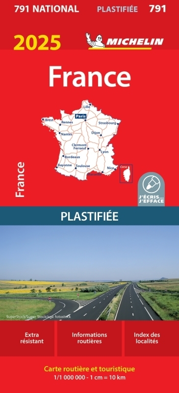 Une carte routière et touristique Michelin pour être maître de votre itinéraire : • Mise à jour 2025 • Une vue d'ensemble claire du pays • Une cartographie précise et ultra lisible • Echelle : 1/1 000 000 ème (1 cm = 10 km) • Format : 10.6 x 1 x 22.1 cm • Les plus : itinéraires conseillés, informations routières, index des localités, principaux sites touristiques du Guide Vert MICHELIN, indications des zones de danger, légende intuitive • Et surtout un support PLASTIFIE résistant à l'eau et permettant même d'écrire et d'effacer sur la carte ! Pensez à utiliser en complément notre collection de Guide Vert des régions de France, notre collection de Guide Vert Week&GO en France... Avec la carte MICHELIN trouvez bien plus que votre route !
