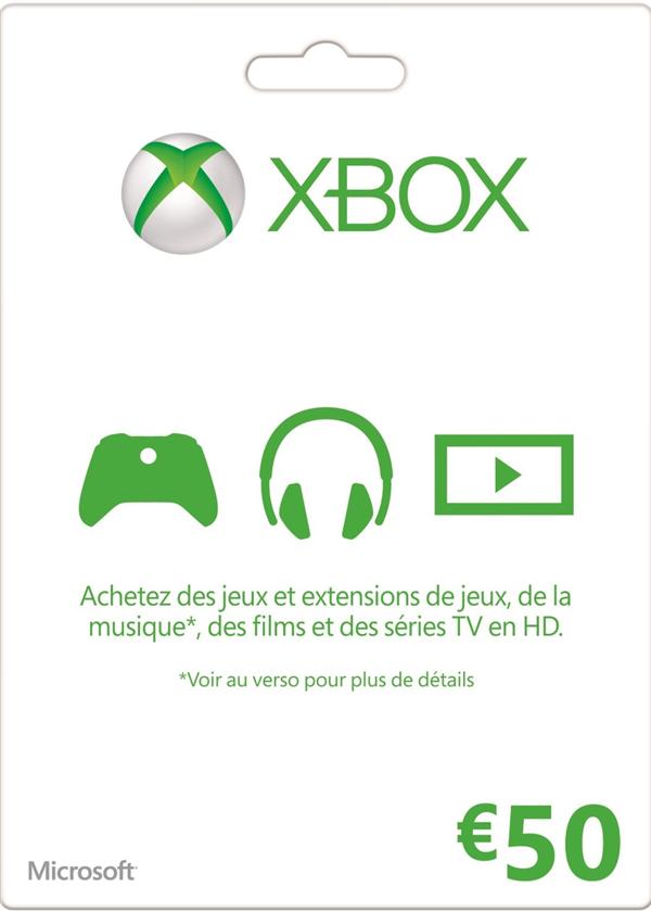 carte prépayée Xbox Live carte cadeau 50 euros (XBOXONE)