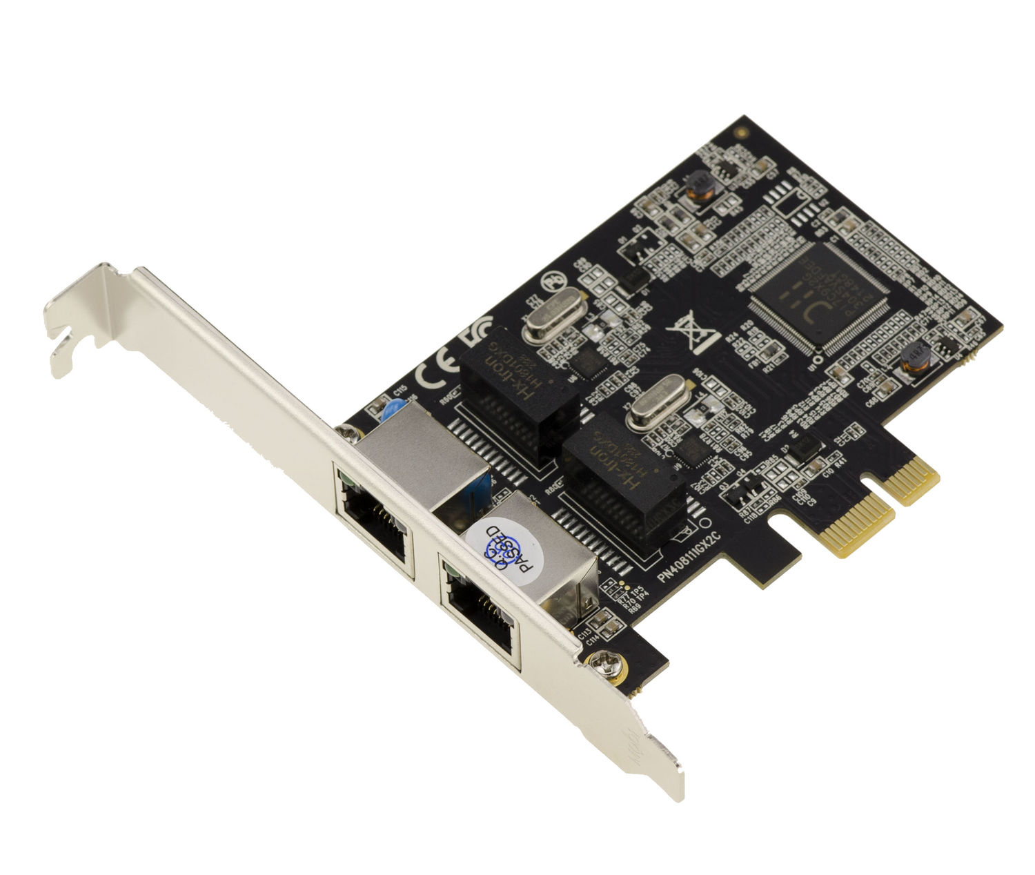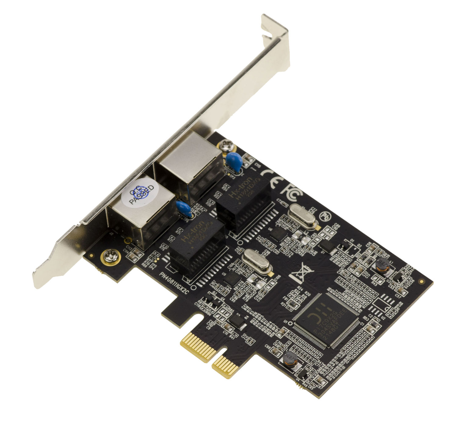 Pour PC DE BUREAU sur port PCIe, permet de rajouter deux ports réseau Gigabit Ethernet supportant le réveil à distance WOL.