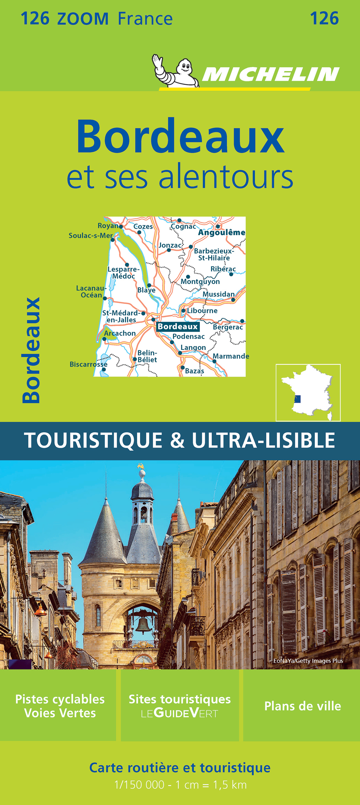 La nouvelle carte Bordeaux et ses alentours MICHELIN avec son échelle au 1/150 000 - 1cm = 1,5 km, vous permet de connaître en détail cette zone à forte densité urbaine et touristique. Elle vous indique également les SITES TOURISTIQUES DU GUIDE VERT que vous repérez facilement avec sa LEGENDE CLAIRE ET DETAILLEE. Retrouvez aussi les PISTES CYCLABLES, les VOIES VERTES, la LOCALISATION DES PANORAMAS ainsi que LES INFRASTRUCTURES SPORTIVES