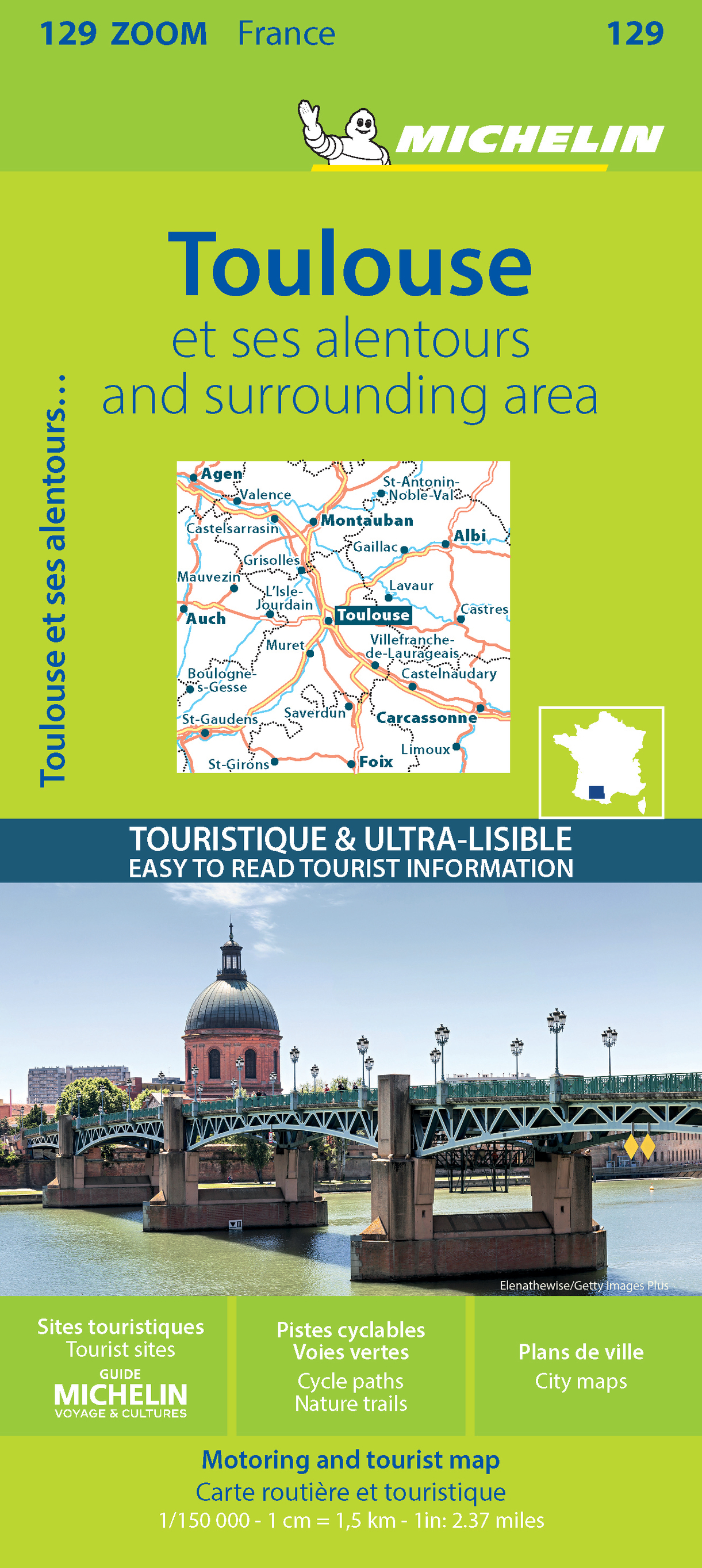 La carte zoom MICHELIN Toulouse et ses alentours est le compagnon de voyage idéal pour découvrir pleinement cette destination française prisée, grâce à son format simple d'utilisation et son échelle au 1/150 000. La collection Zoom se caractérise par la haute précision de leur échelle détaillée, spécialement adaptée pour les zones très touristiques ou avec un réseau routier à haute densité, y compris les nouveaux développements et les zones industrielles. Outre la clarté, la fiabilité et l'actualité de l'information, l'ensemble des éléments cartographiques Michelin est riche d'informations pratiques : lieux et monuments d'intérêt touristique, visites pittoresques, zones de sports et de loisirs... Plans utiles de villes et d'un index pratique des localités. Les cartes contiennent également des lieux d'intérêt et la signalisation des pistes cyclables et des voies vertes. Les MICHELIN ZOOM MAPS sont parfaites pour découvrir les grandes zones touristiques, avec un haut niveau de détails dans un format facile à utiliser. Ils complètent joliment nos Guides Michelin et comprennent : * Diverses activités de loisirs, telles que parcs aquatiques, trains touristiques, courses de chevaux, etc. informations des guides MICHELIN de renommée mondiale