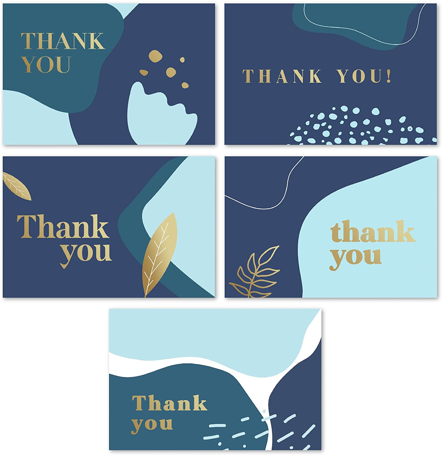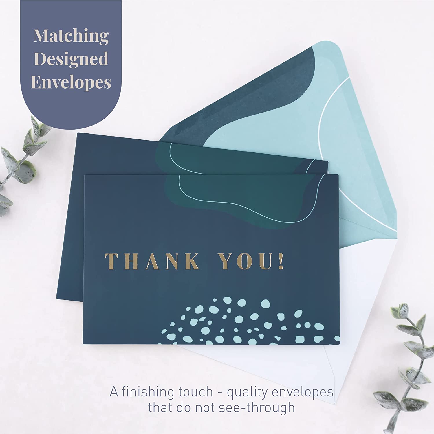 Cartes de Remerciement avec Enveloppes Assorties | 50 Pièces, Feuille d'Or - Cartes de Correspondance Vie